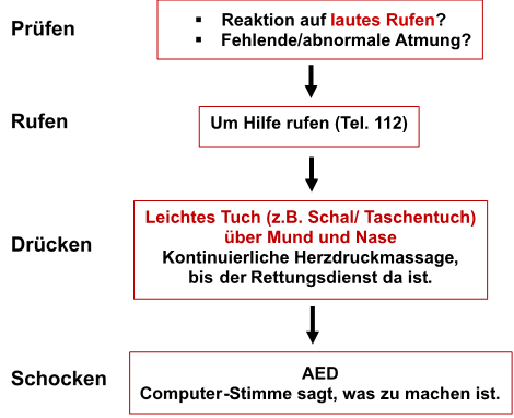 Die einzelnen Schritte einer Wiederbelebung durch Laien kurzgefasst
