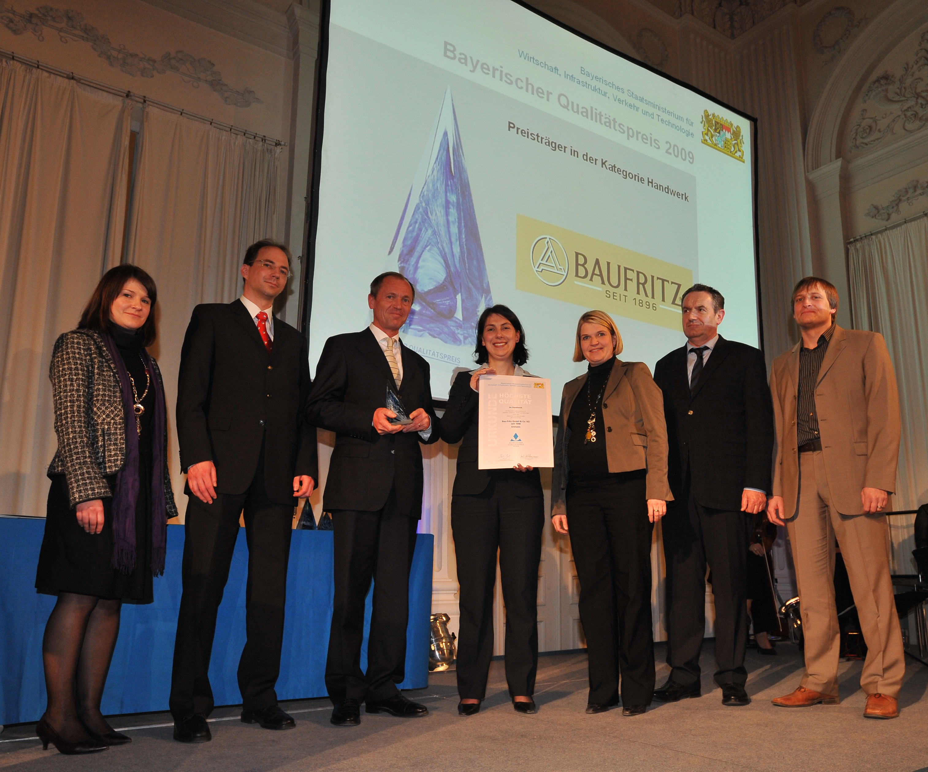 (v.l.n.r) Nina Popp (Marketing), Christian Gscheidmeier (Holzbauingenieur), Helmut Holl (Geschäftsführer), Bayern Staatssekretärin K. Hessel, D. Fritz-Kramer (Geschäftsführerin), K. Mayer (Prokurist) und M. Reisacher (Qualitätsmanagement)
