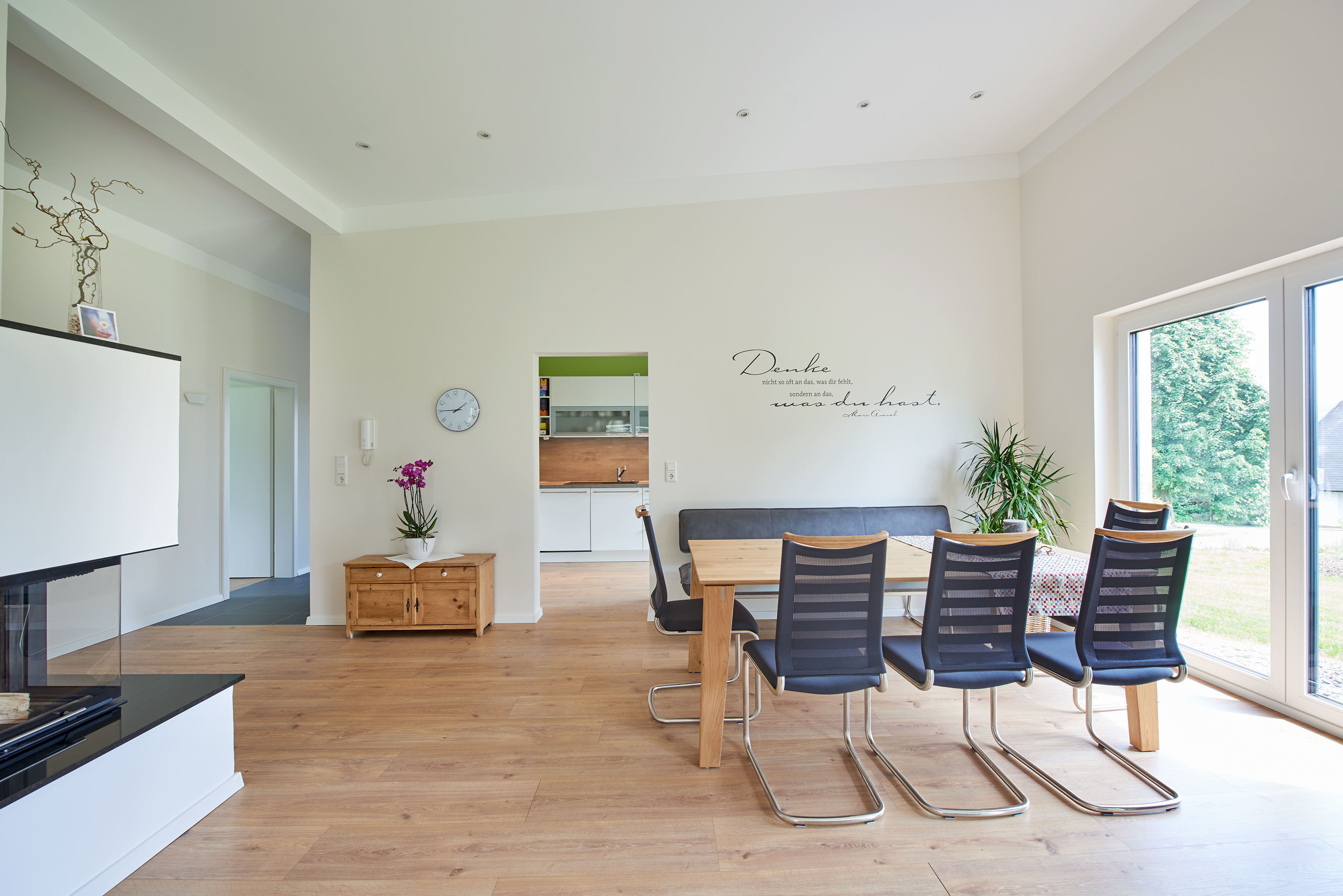 Ebenerdig: Alle Wohnräume sind bequem auf einer Ebene erreichbar. Dank der offenen Architektur bieten die Räume viel Platz und natürliches Licht