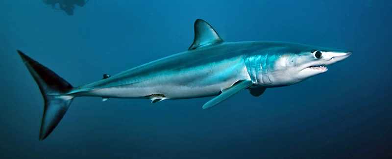 Typisch Kurzflossen-Mako: spitze Schnauze, große, runde Augen, sehr schlank und stromlinienförmiger Körper – Foto: Shark Project