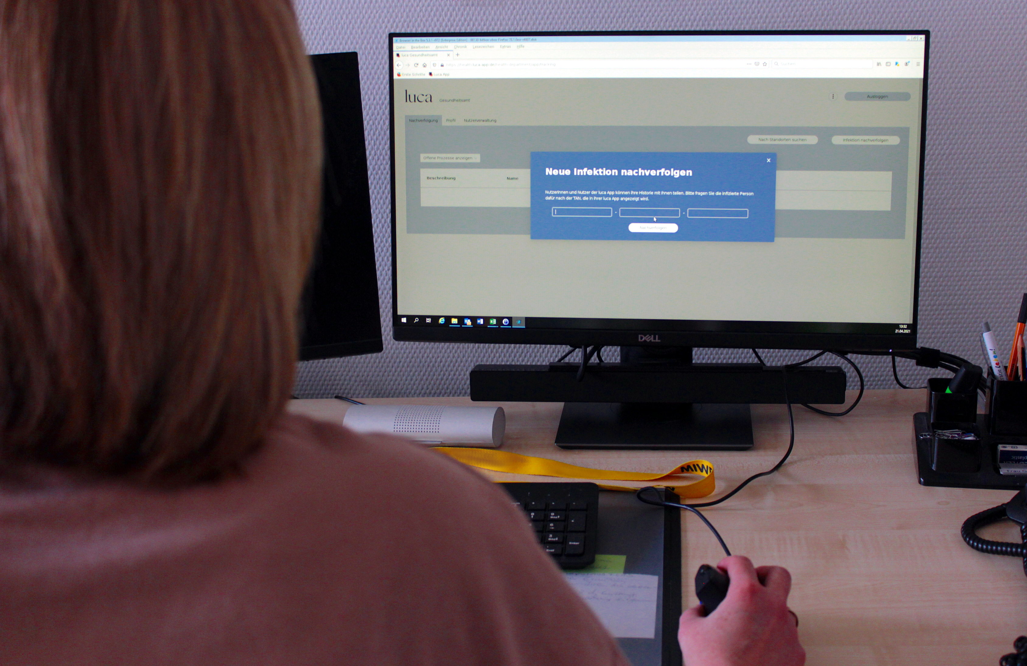 Die luca-App im Einsatz: Im Gesundheitsamt des Vogelsbergkreises können ab sofort über eine Schnittstelle Daten von luca-App-Betreibern einlaufen und die Kontaktpersonennachverfolgung vereinfachen. (Foto: Vogelsbergkreis/C.Lips)
