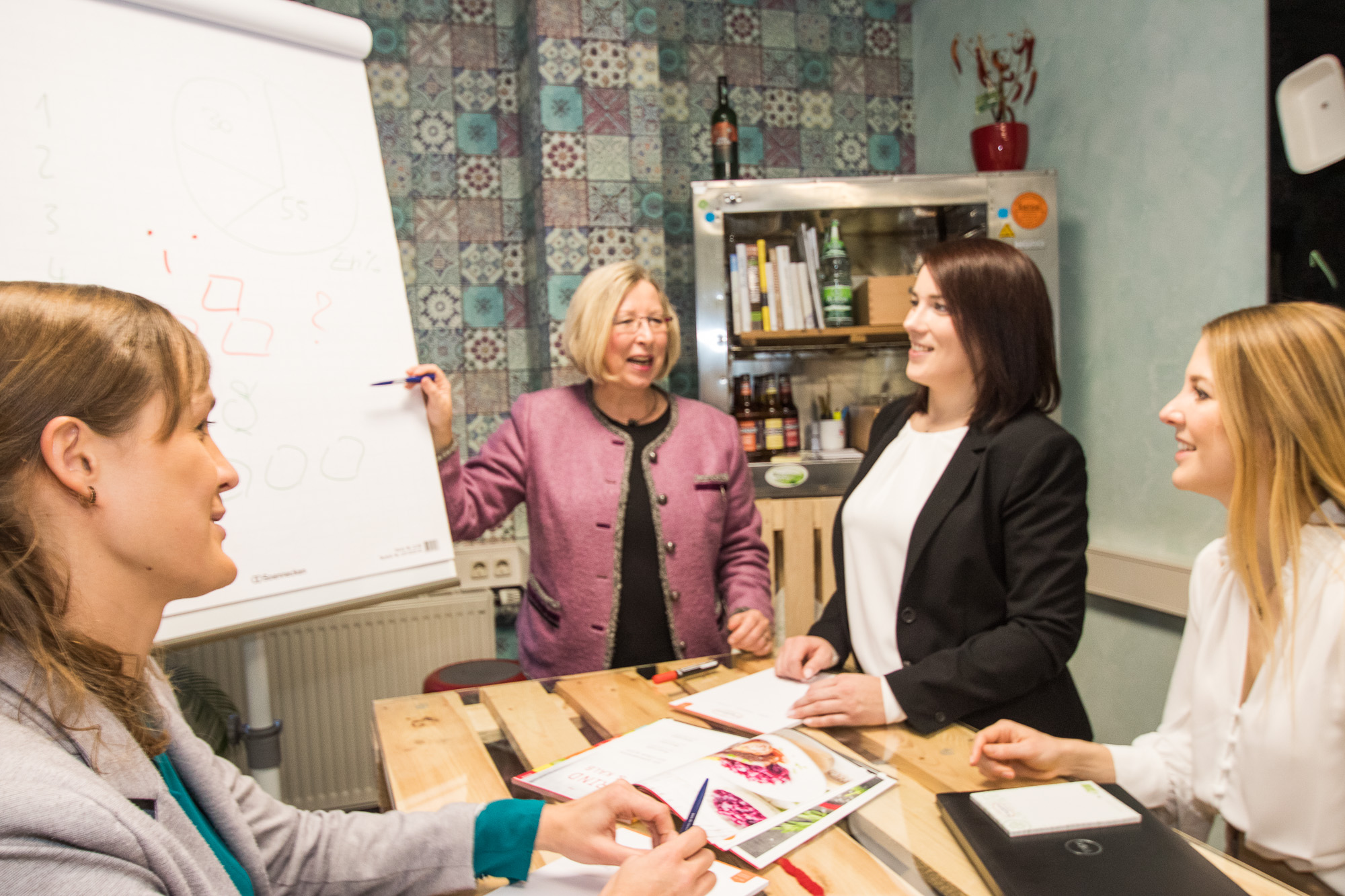 Das Team der Ernährungsberatung der Menü-Manufaktur Hofmann um Dagmar Heckmann (Zweite von links) bietet neben Informationen zur gesunden Ernährung für verschiedene Altersgruppen auch individuelle Beratungen und Hilfe bei der Speiseplangestaltung. (Hinweis: Das Bild ist vor der Corona-Pandemie und den damit einhergehenden Regelungen entstanden.)