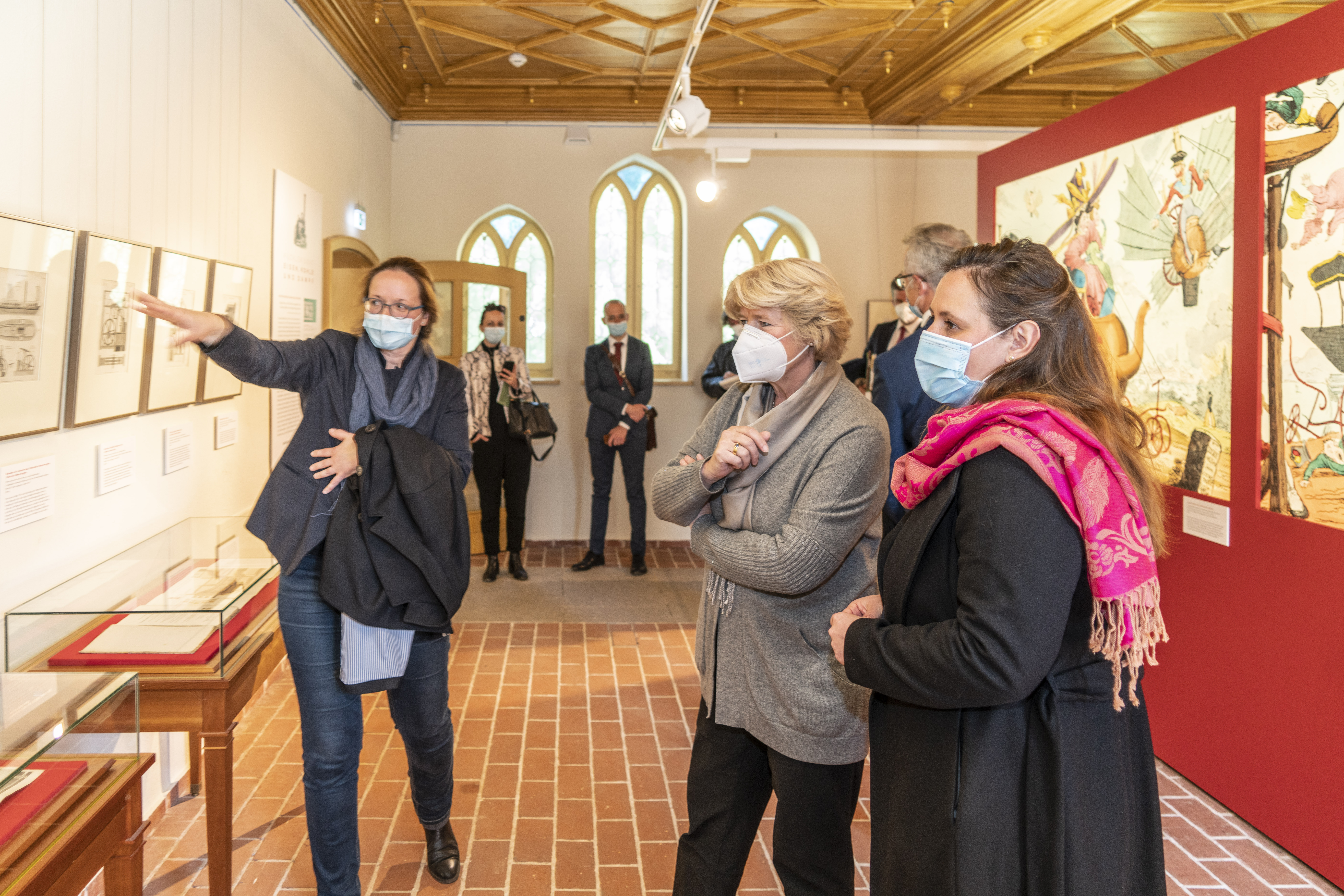 Kuratorin Dr. Simone Neuhäuser mit Monika Grütters und Manja Schüle in der neuen Sonderausstellung „PÜCKLER INDUSTRIÖS“ im Marstall / Foto: © SFPM/codiarts. ® Harry Müller