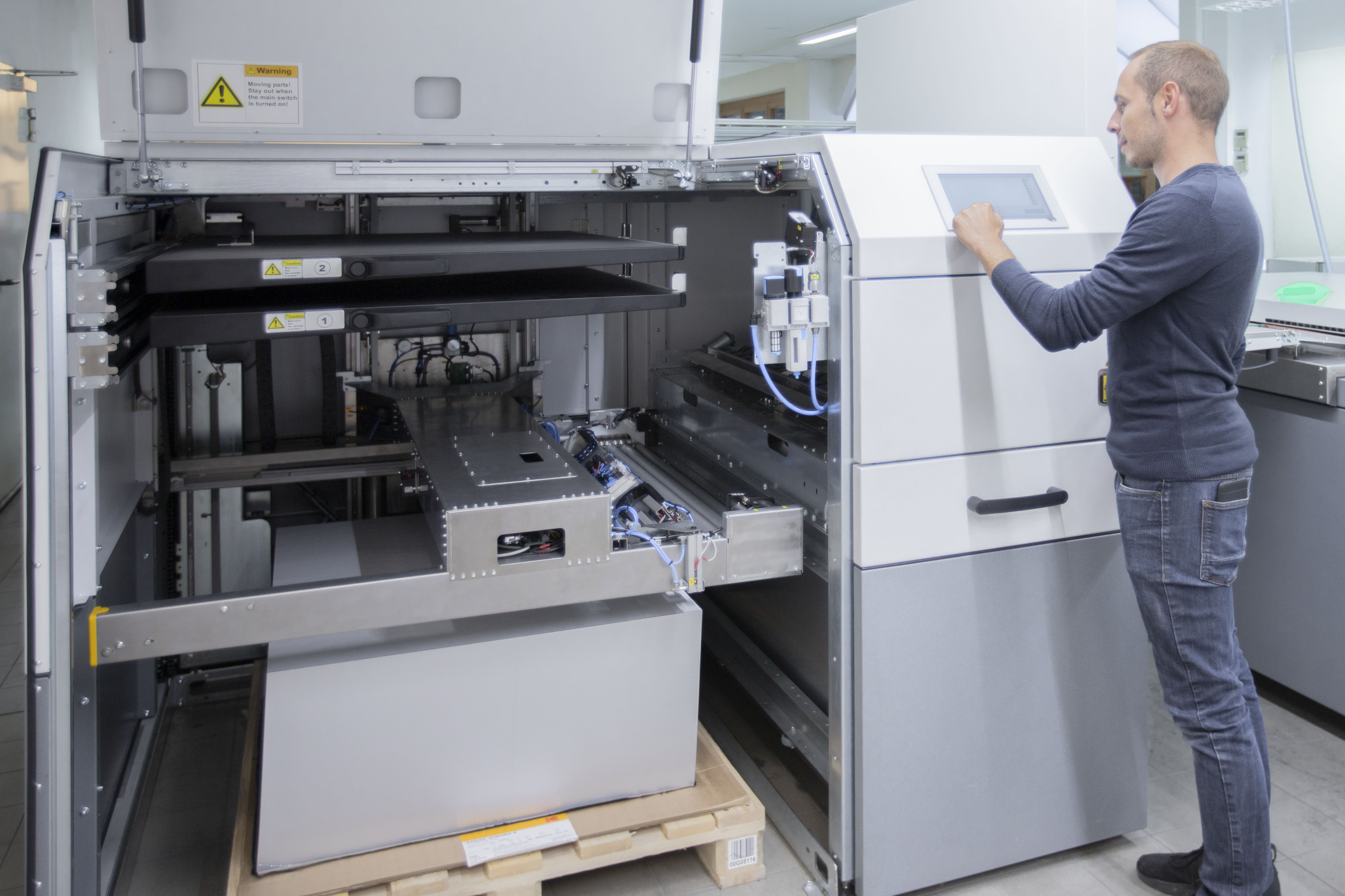 Der KODAK MAGNUS Q800-Plattenbelichter ist der weltweit schnellste 8-Seiten-Plattenbelichter. Mit der Investition in den KODAK MAGNUS Q800-Plattenbelichter wird der Offset-Druck von ONLINEPRINTERS noch umweltschonender, energiesparender und schneller / Copyright: ONLINEPRINTERS