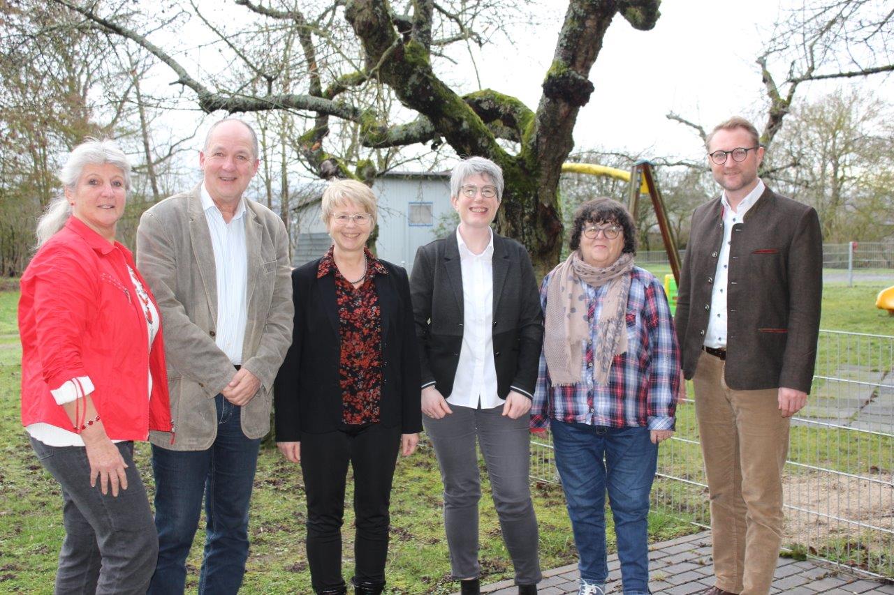Erster Kreisbeigeordneter Dr. Jens Mischak (rechts) im Gespräch mit Renate Loth, Fred Weißing, Carola Günther, Yvonne Schäfer und Waltraud Fischer (von links). Es fehlt Thomas Rudolph. Foto: Vogelsbergkreis