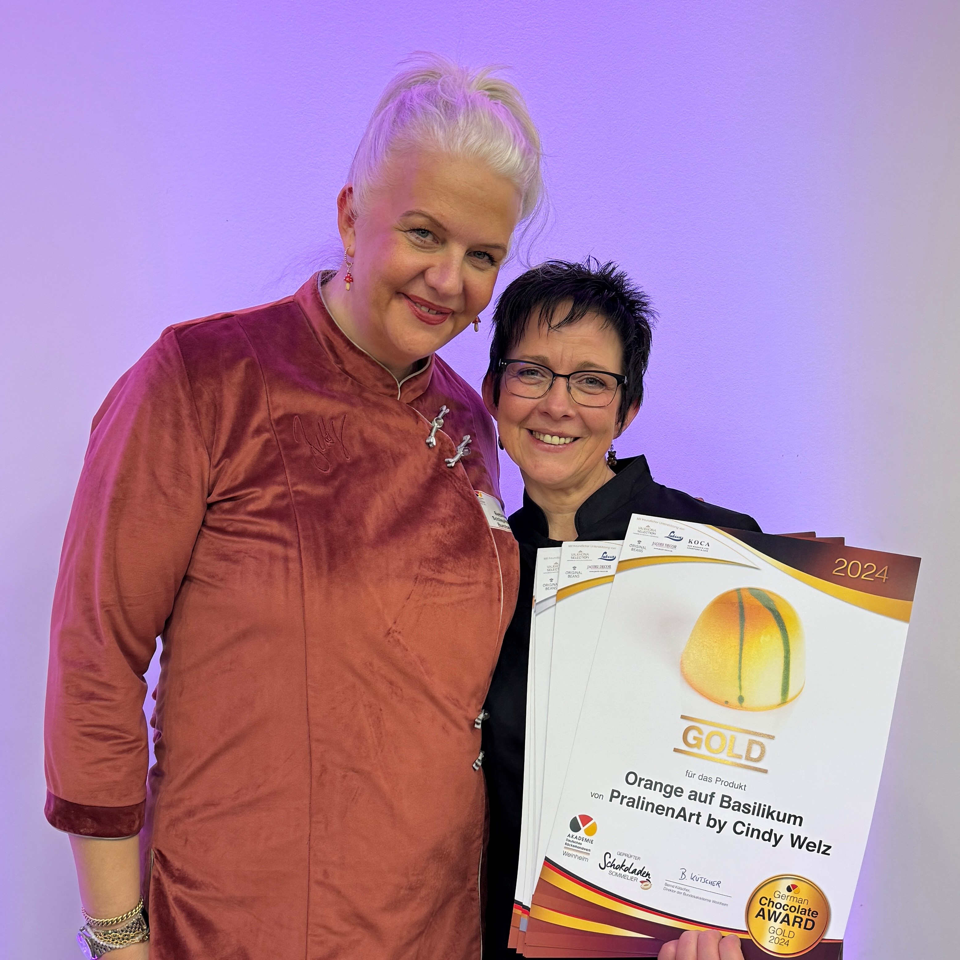 Bettina "Betty" Schliephake-Burchard nach der Preisverleihung zusammen mit Cindy Welz beim German Chocolate Award