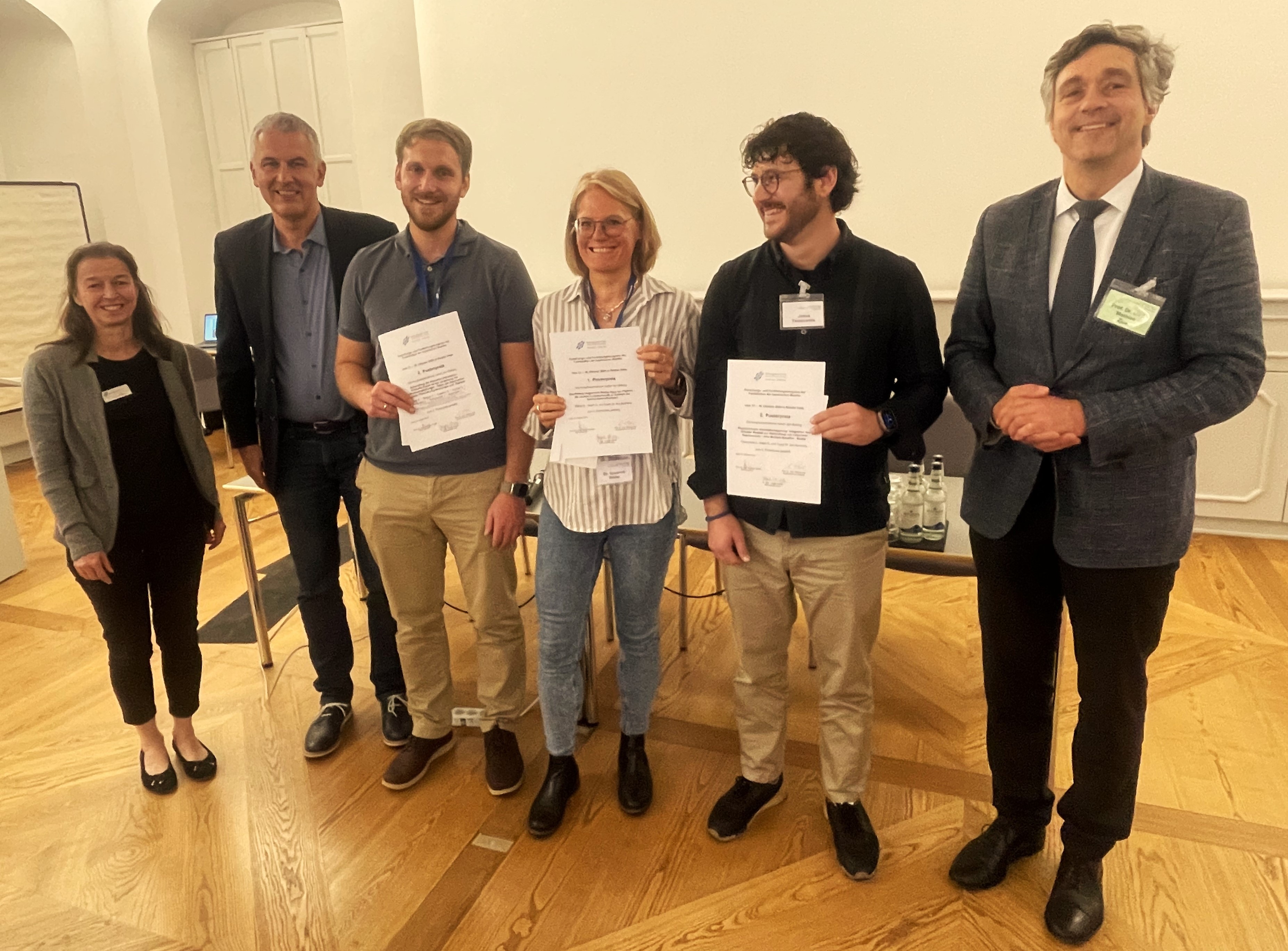 Prämierung der Poster-Preisträger des Forschungskongresses 2024 durch die Kongressleitung, v.l.n.r.: Dr. Angela Städele (Bildungswerk Irsee), Prof. Dr. Hermann Spießl (BKH Landshut), Paul Kriner (kbo Lech-Mangfall-Klinik Garmisch-Partenkirchen; 2. Preis), Dr. Susanne Röder (Sozialstiftung Bamberg, 1. Preis), Josua Tsiaousidis (Sozialstiftung Bamberg; 2. Preis) und Prof. Dr. Mathias Zink (Bezirksklinikum Ansbach)