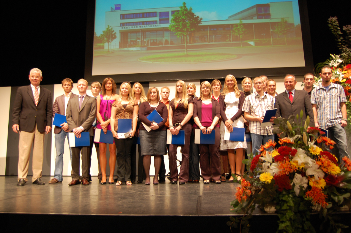 IHK-Bestenehrung mit IHK-Hauptgeschäftsführer Heinrich Metzger (links), MdB Josip Juratovic (3. von rechts) sowie den Nomminierten zur Landesbestenehrung