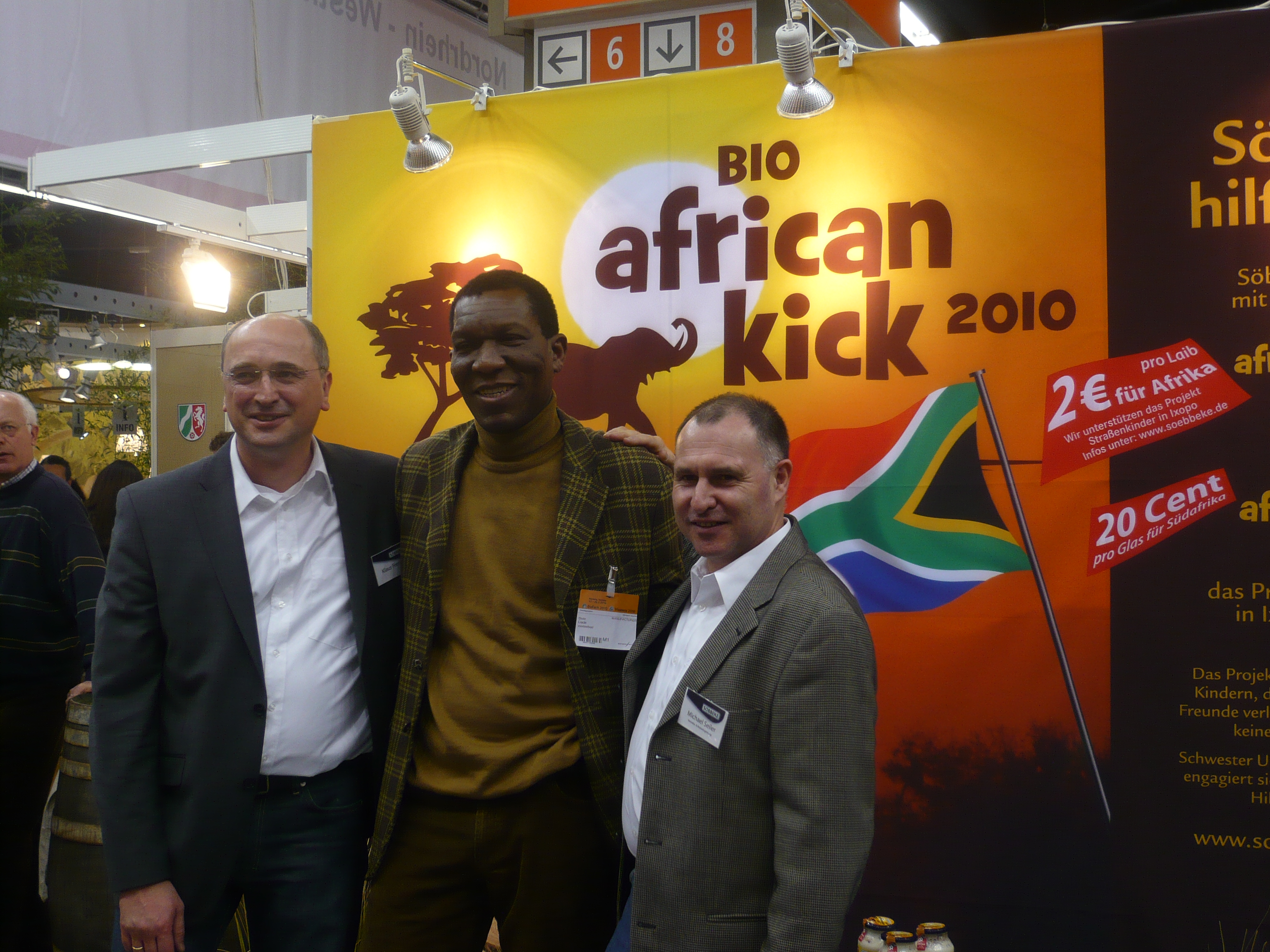 v. l. : Klaus Frericks (Vertrieb Bio-Molkerei Söbbeke), Dr. Dodo Liadé (Gewürzlieferant des Gewürzes Harissa Tuareg für den "african cheese kick") und Michael Seiler (Vertriebs- und Marketingleiter Bio-Molkerei Söbbeke)