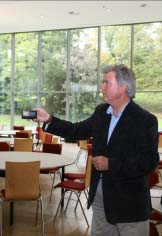 Bei Prüfung zum Certified Conference Hotel geht es um Fakten. So müssen zum Beispiel alle Tagungsräume durch fest eingebaute Beleuchtungskörper mit mindestens 300 Lux ausgeleuchtet sein.Prüfer Holger Leisewitz hier mit Messgerät im Dolce Hotel Bad Nauheim
