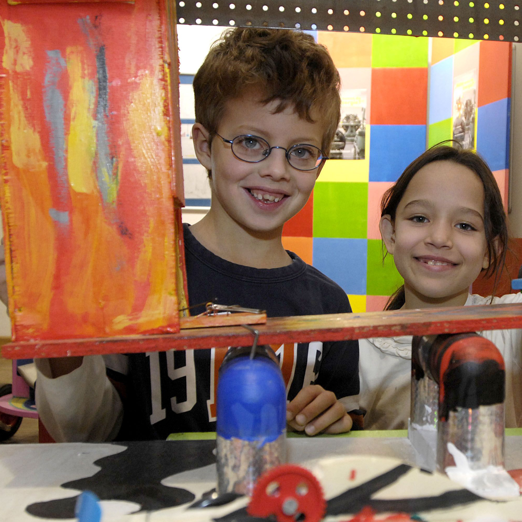 Simon, Daniela und Cosima demonstrieren die von Kindern im Ferienprogramm des Deutschen Museums gebastelte "Energiemaschine". Unterstützt hat diese Aktion die Kinder- und Jugendstiftung der Stadtsparkasse München.