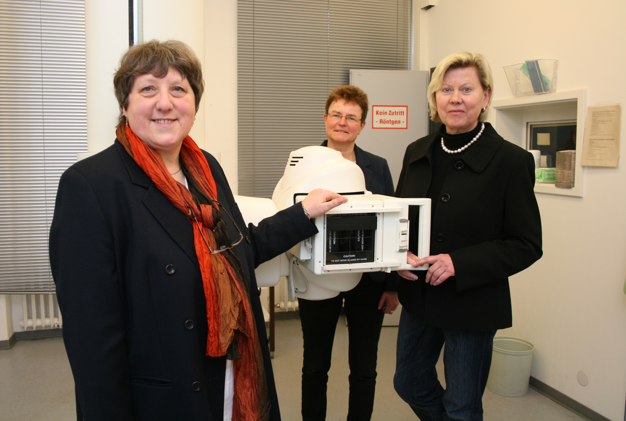 Stellten im Röntgenraum der Tuberkulose-Beratungsstelle im Haus der Region die aktuellen Erkrankungs-Zahlen vor: Helga Heykes-Uden, Leiterin des Teams Infektionsschutz TBC, Dr. Martina Baxmann vom Team Infektionsschutz TBC und Barbara Thiel, Dezernentin für Öffentliche Gesundheit und Sicherheit der Region Hannover (von links nach rechts).