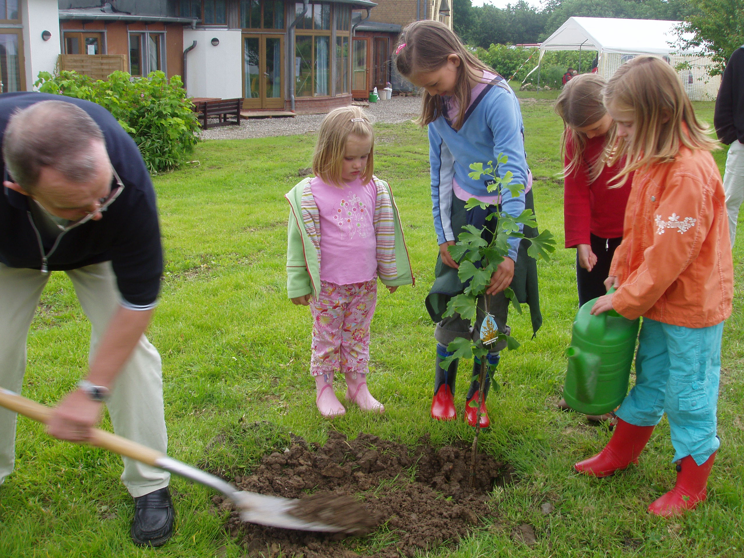 So macht Klimaschutz nachhaltig Spaß: Kinder pflanzen einen Gingko.Baum auf dem artefact-Gelände