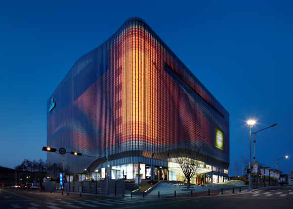 Fascinating interplay between façade and architecture in Galleria Centercity shopping mall in Korea. This is made possible by a special Zumtobel LED lighting solution that is fully integrated into the façade and therefore invisible