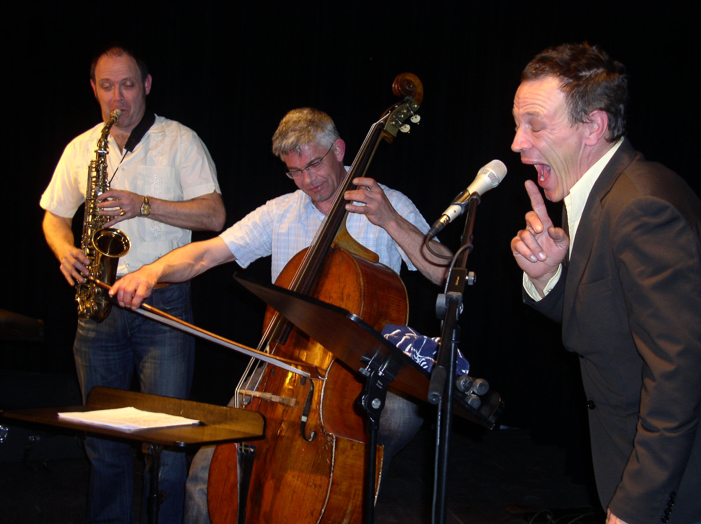 Ernst Meister: "Unterm schwarzen Schafspelz", musikalisch umgesetzt von Jan Klare (Saxofon), Wilbert de Joode (Bass) und Han Buhrs (Sprache und Gesang)