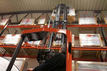 Die Schubmaststapler Reflex M sind mit einer neuen Antriebseinheit, einem neuen Motor, Getriebe und Antriebsrad sowie mit einer verbesserten Kabinenausstattung und PIN Code-Zugang ausgerüstet