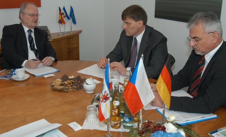 Botschafter der Tschechischen Republik in Deutschland, S.E. JUDr. Rudolf Jindrák (Bildmitte), IHK-Präsident Jörgen Thiele (1.v.l.) und stellv. IHK-Hauptgeschäftsführer Ulrich Unger (3.v.l.)