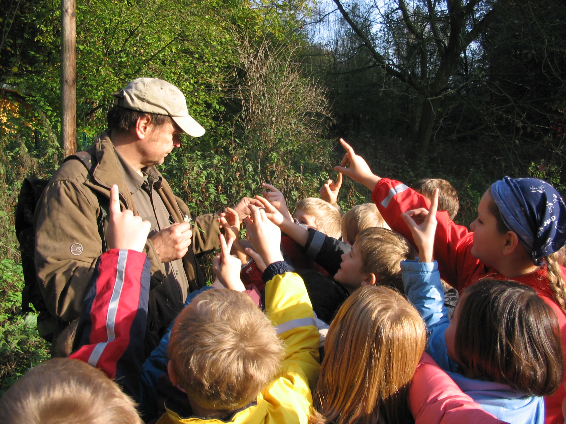 Peter Vieres zeigt in der Walderlebnisschule in Bochum: Regelmäßige Naturerfahrungen machen Kinder stark (Foto: DJV)