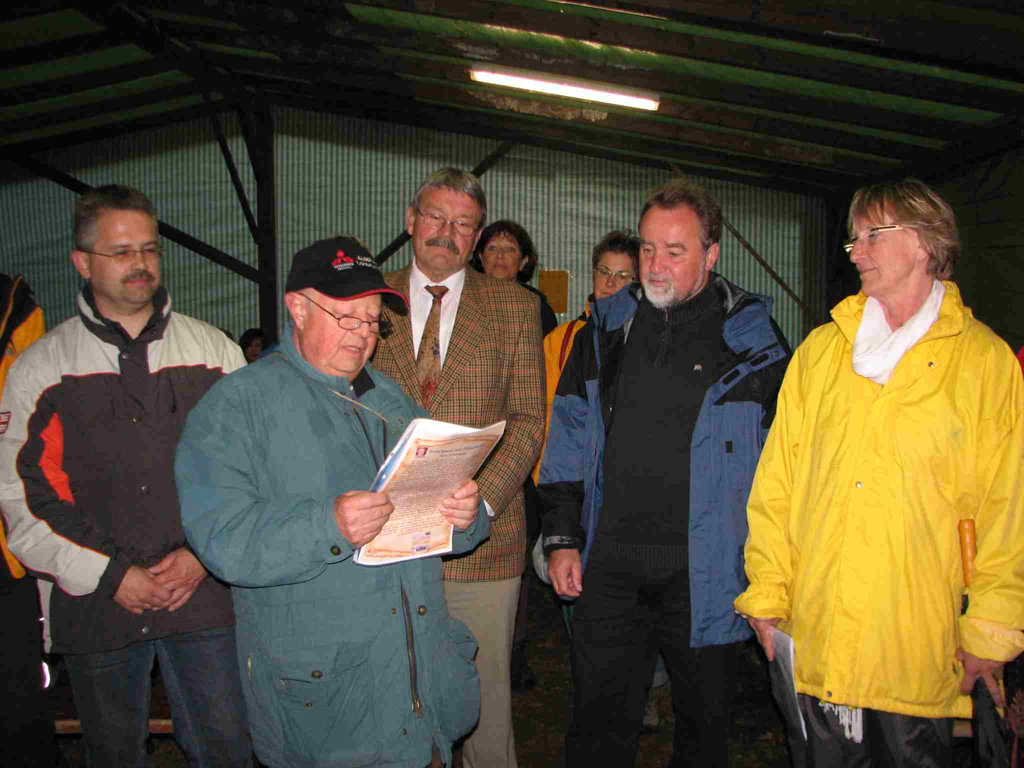 Hier erzählt Egon Lohbrunner, einer der Väter der Irrbachquellen-Renovierung, von den Anfängen.v.l.Jochen Rietdorf, Egon Lohbrunner,Christian Wesp, Gerd Lode und Eva-Gesine Wegner