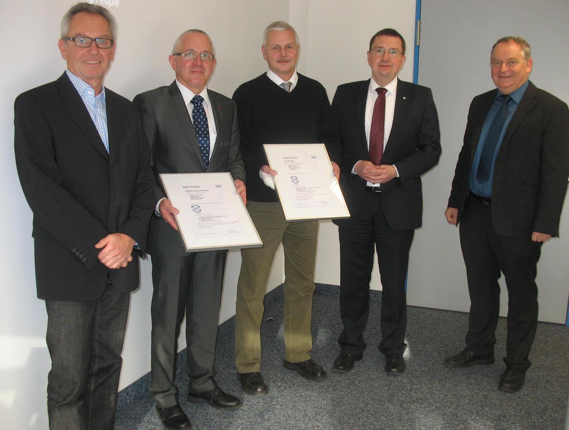 (von links): Werner Troll (Projektbetreuer SKZ-Tecona GmbH), Lothar Grimm (Vice President und Werksleiter, AL-KO Kunststofftechnik), Jürgen Horn (Projektmanagement, AL-KO Kunststofftechnik), Dr. Gerald Aengenheyster (Geschäftsführer SKZ-Tecona GmbH) und Burkhard Nöth (Bereichsleiter Service SKZ-Tercona GmbH)