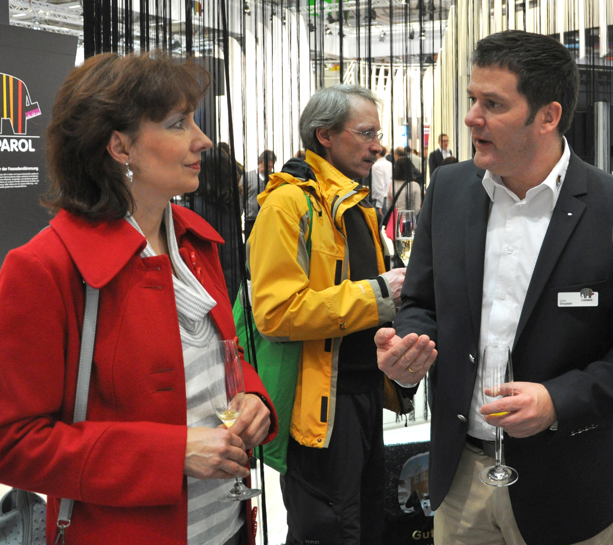Beratung vom Experten: Guido Cruysen, Geschäftsführer Vertrieb bei Caparol, erklärt Gewinnerin Monika Bretz, worauf es bei einer Fassadendämmung ankommt (Foto: Caparol Farben Lacke Bautenschutz)