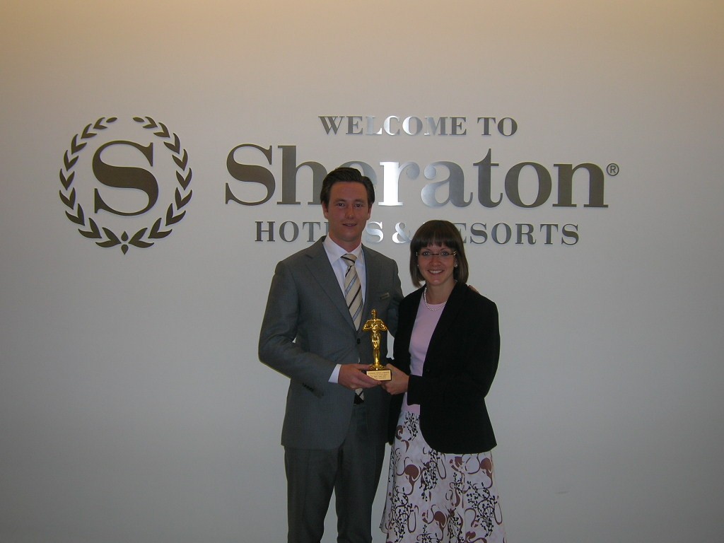 Sheraton Frankfurt Hotel & Towers: Kathrin Settele (Accounts Payable Supervisor) und Floris Elshof (Director of Guest Services) mit der Auszeichnung "Six Sigma Innovationspreis" 2007