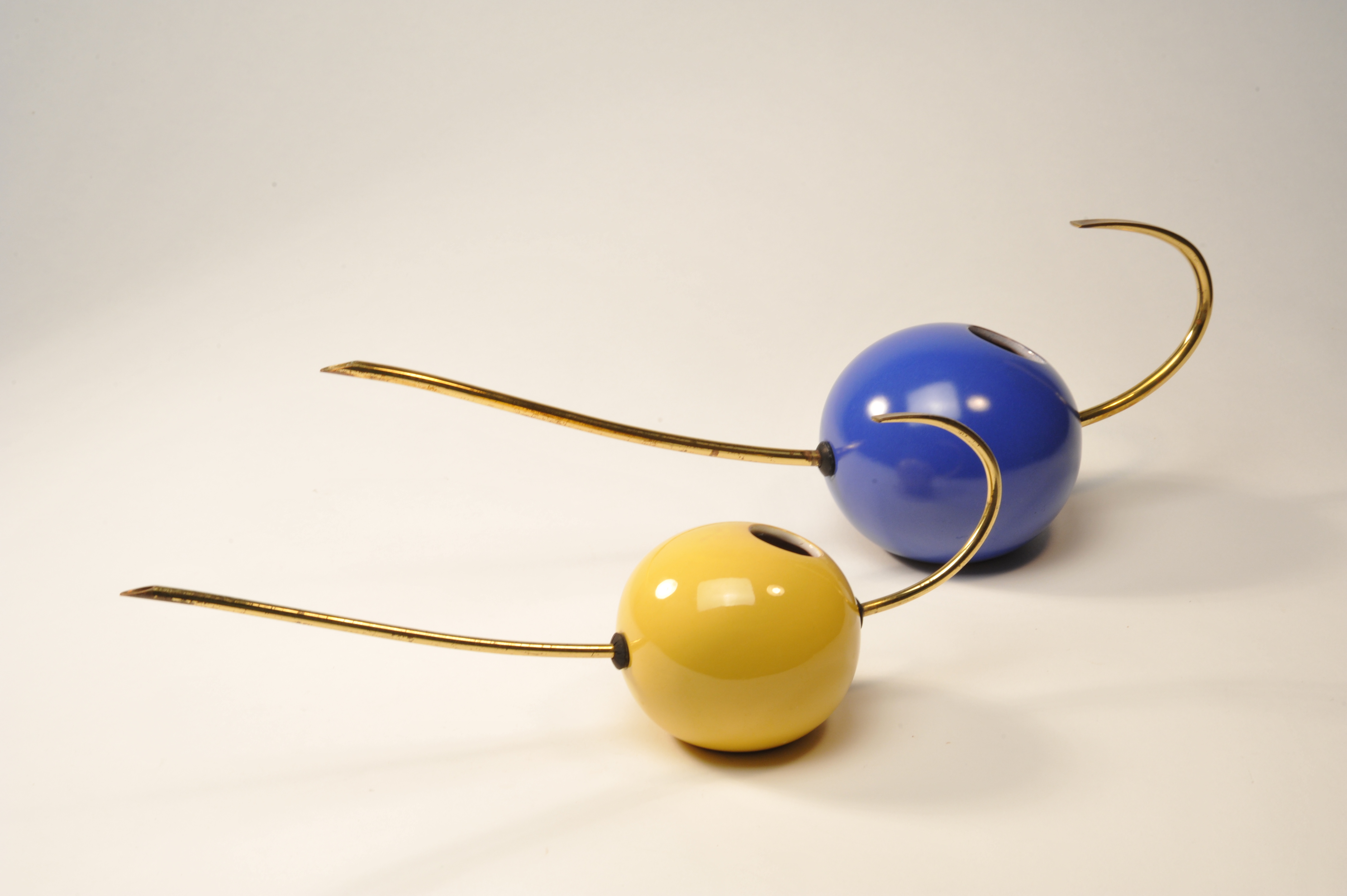 Entwurf: Ernest Hoffmann (igl-Design), 1950-54 Ausführung: Hessische Majolika Fritz Dienes, Mühlheim am Rhein Majolika, glasiert; Messing, Gummi
