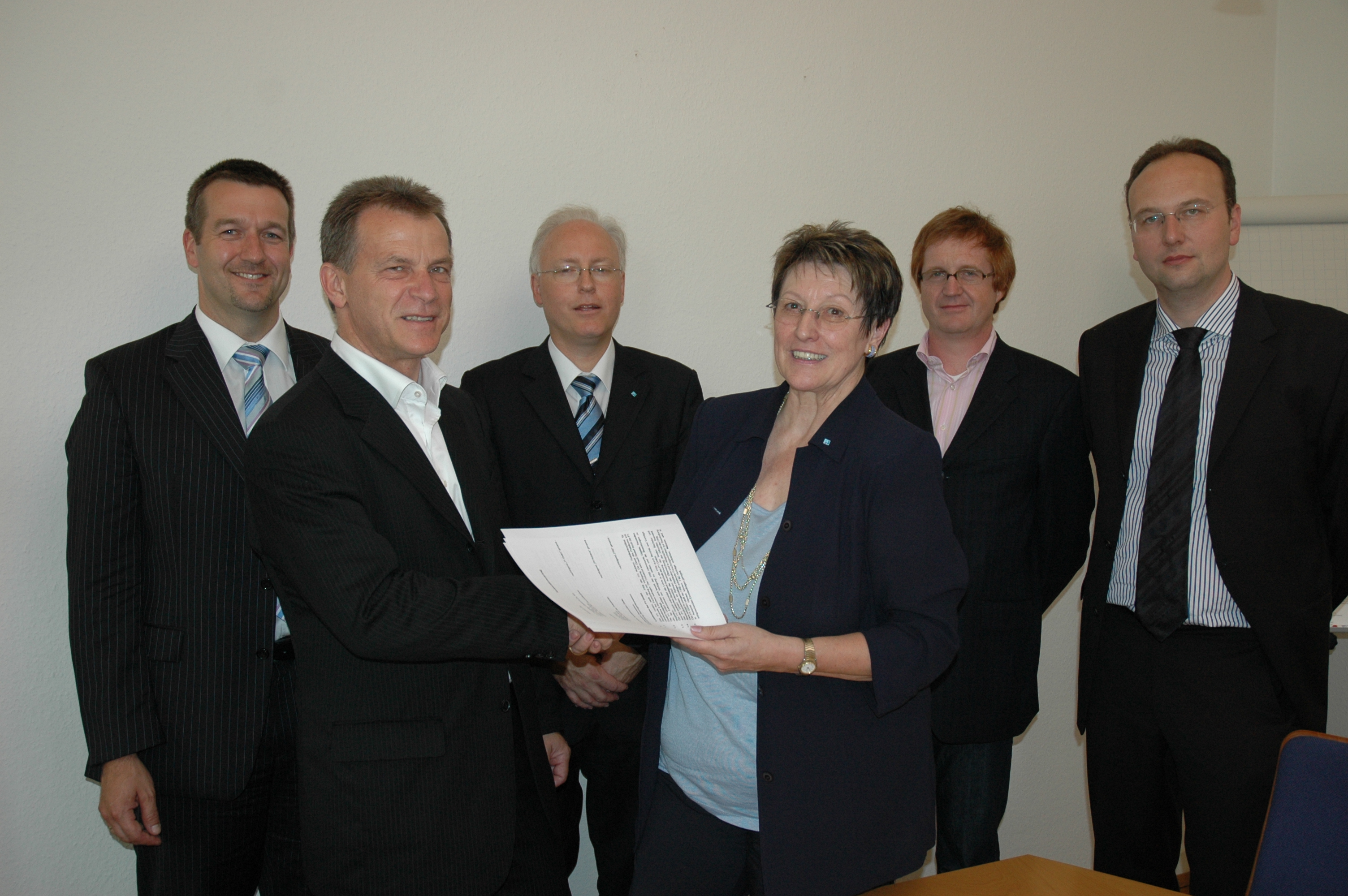 Handschlag"(von links) Jürgen Kohlhas, Peter Simon, Prof. Dr. Norbert Krudewig, Prof. Ingeborg Henzler, Peter Merz und Rechtsanwalt Konstantin Sassen
