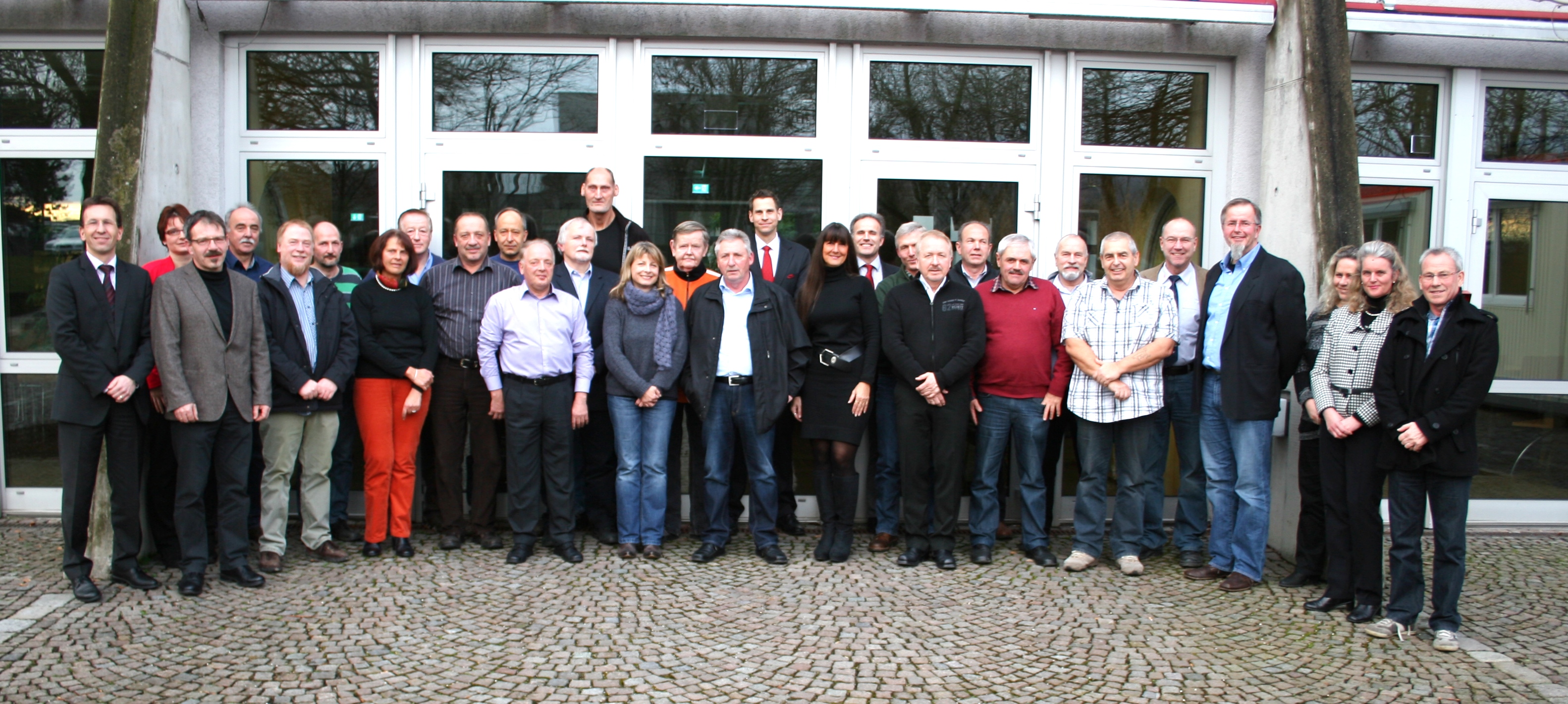 Auf den Gruppenbild sind neben den Jubilaren auch noch folgende Personen zu sehen: ganz links Vorstand Stefan Bartosch, die Unternehmensbereichsleiter Guido Haas (2. v.l.) Oliver Benz (ganz hinten Mitte) Johannes Waibel (rechts neben H. Benz), Vertreter des Betriebsrats Hubert Burgert und Uwe Zahn (5. und 4. v. rechts) sowie die Vertreterinnen der Personalabteilung Silke Mutschler und Claudia Ziert (3. und 2. von rechts)