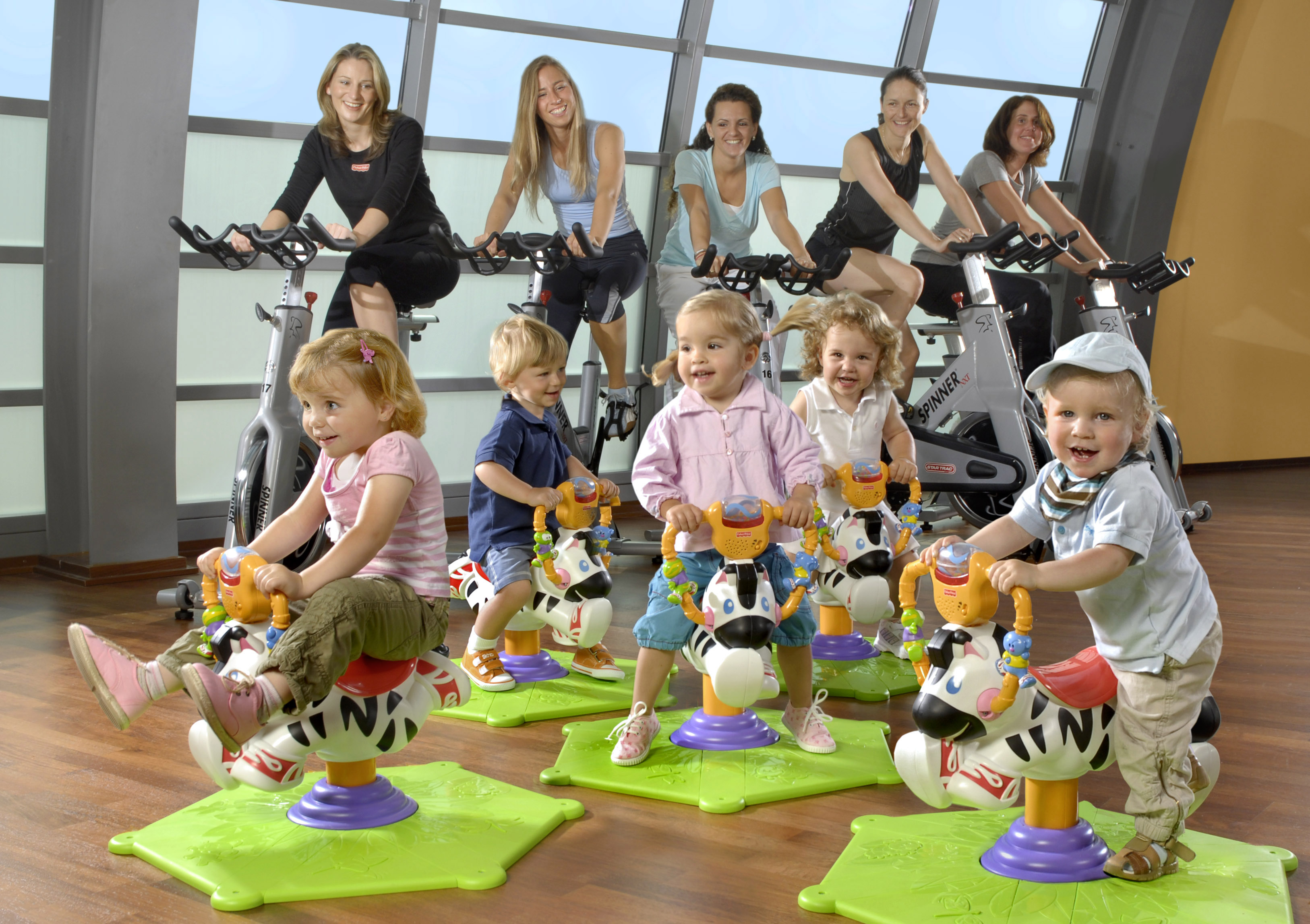 Fitness und Action für Groß und Klein: Während die Eltern trainieren, vergnügt sich der Fitness-Nachwuchs mit dem "Hipp Hopp Zebra" und vielen weiteren attraktiven Fisher-Price-Produkten in der "Kids Company".