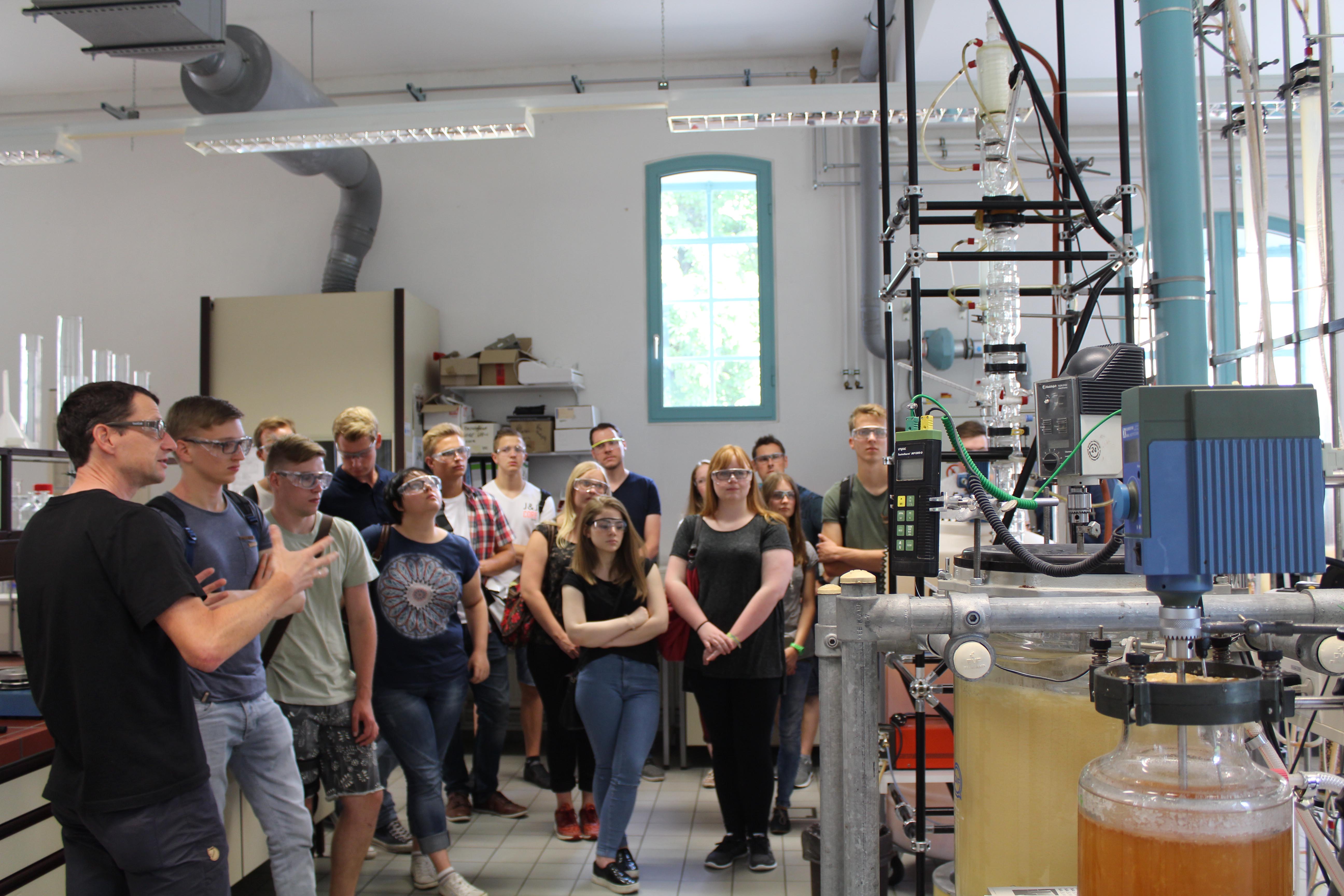 Die Bewerberinnen und Bewerber wurden über den Campus Westerberg geführt und erhielten Einblicke in die Labore, wie hier in das Labor der Verfahrenstechnik.