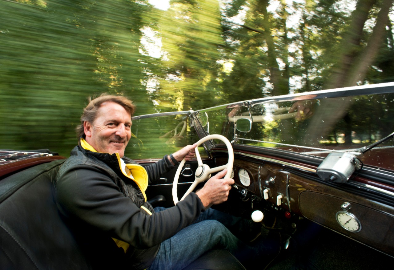 Gut gelaunt: Opel Markenbotschafter und Tourenwagenstar Jockel Winkelhock in seinem Kronberg Klassik Rallye-Fahrzeug Super 6 Gläser bei der Kronberg Klassik 2017