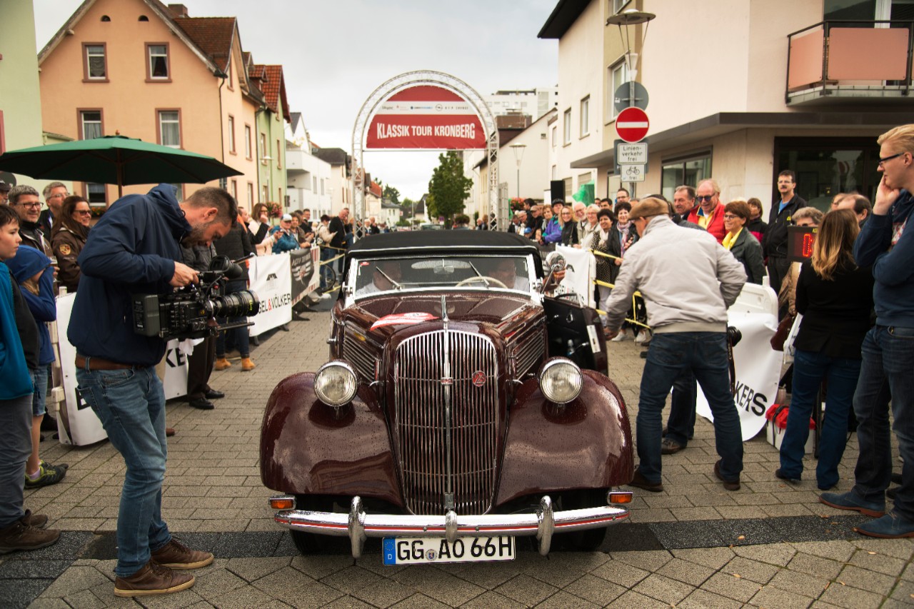 Geschafft: Der Super 6 Gläser erreicht das Ziel der Klassik Tour Kronberg 2017 auf dem Herbstmarkt in Oberursel