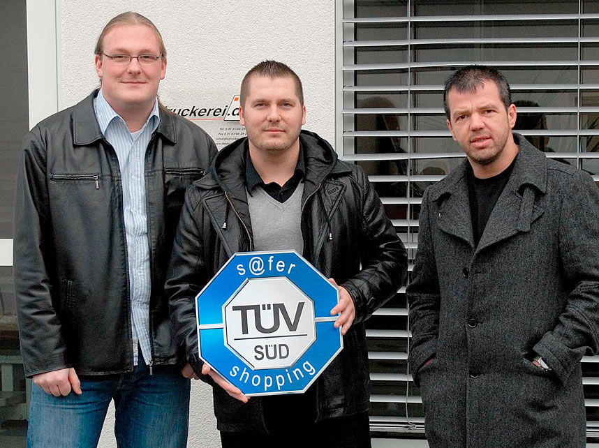 Führungsteam der Onlineprinters GmbH - von links nach rechts: Martin Betz (technische Leitung), Stefan Plomitzer (Prokurist), Walter Meyer (Geschäftsführer)