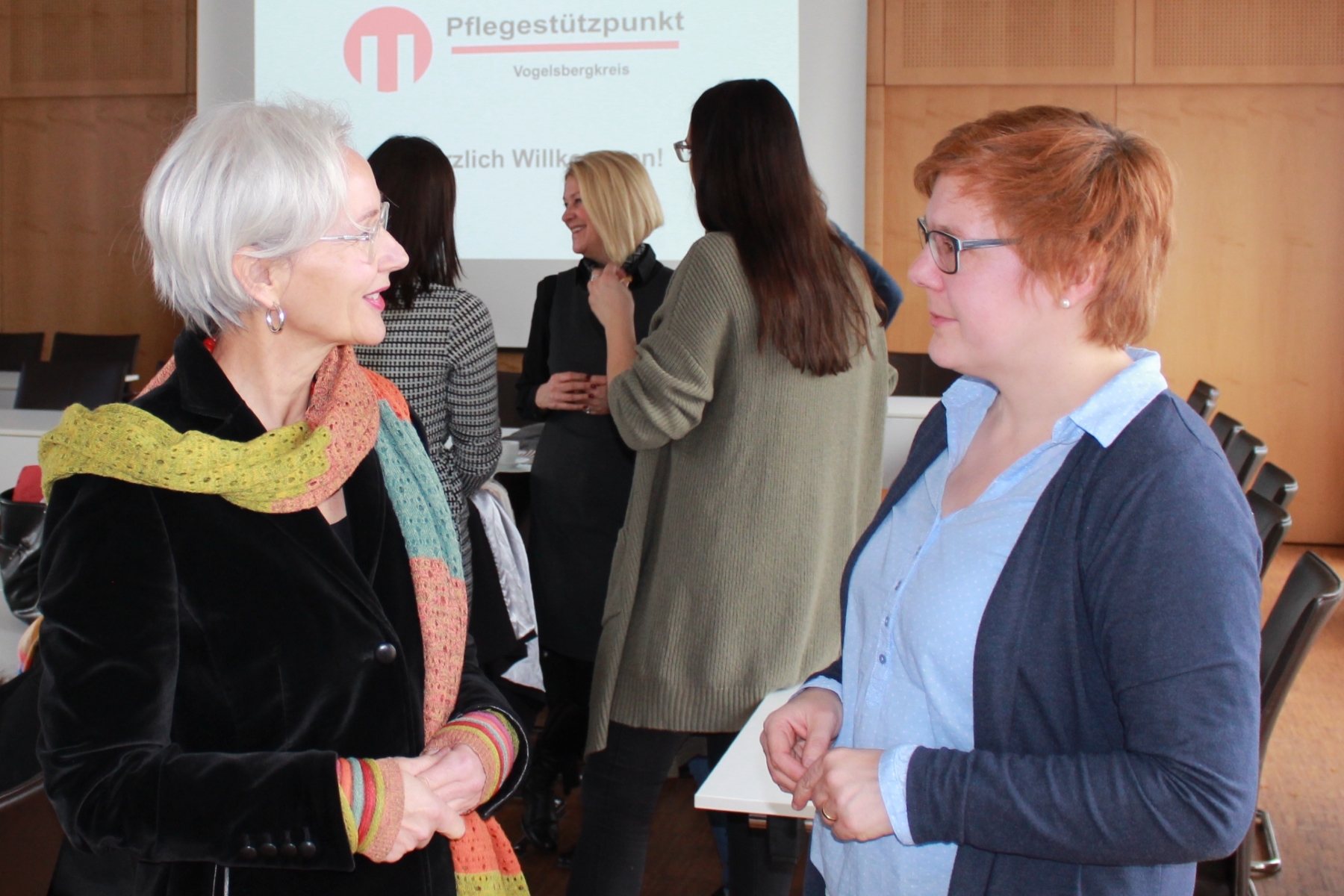 Referentin Jutta Burgholte-Niemitz (li.) berichtet beim Treffen der Pflegestützpunkte aus der Hessischen Fachstelle Demenzwohngemeinschaften / Foto: Erich Ruhl-Bady
