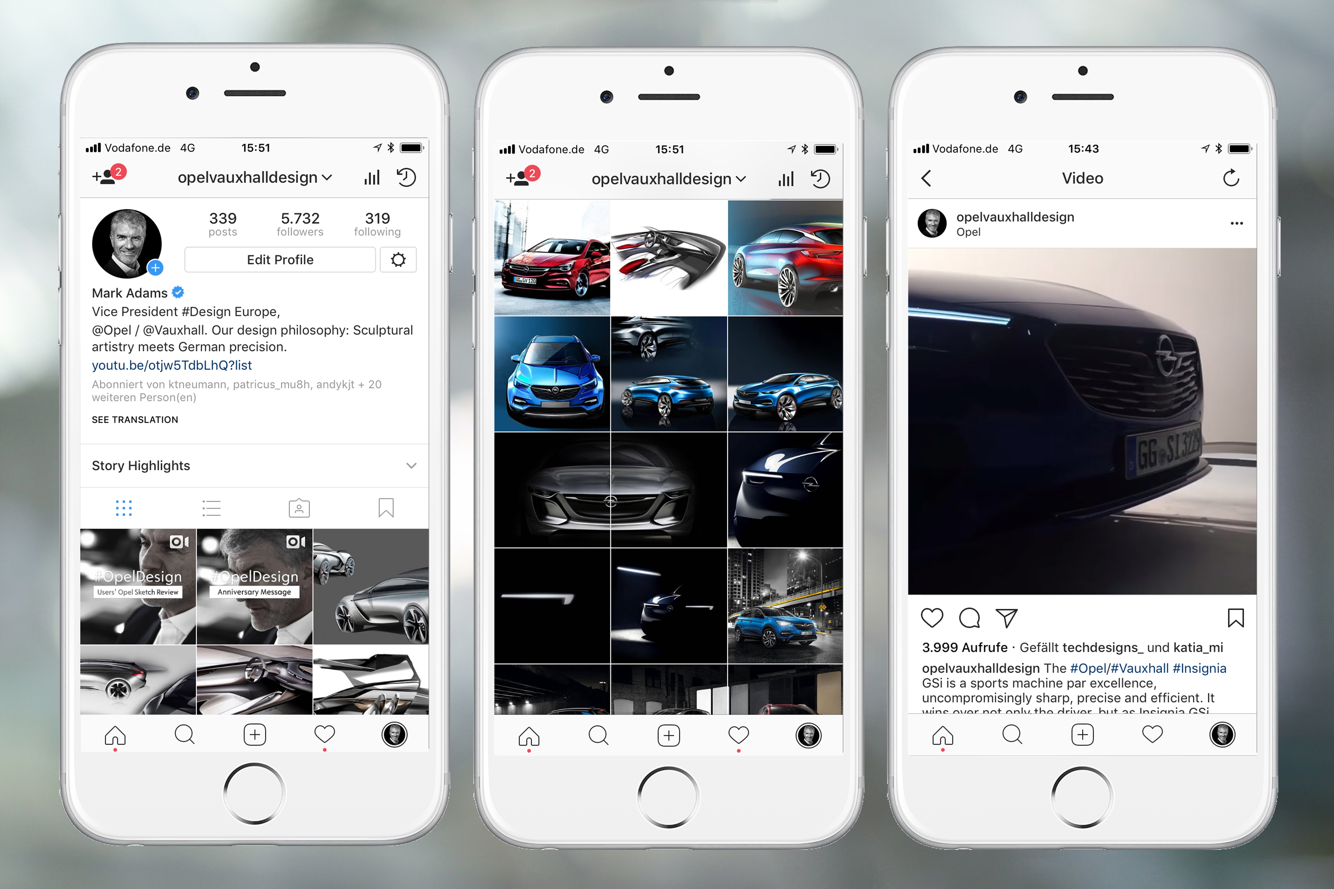 Infos, Fotos und Skizzen aus erster Hand: Der vor einem Jahr gestartete Instagram-Kanal @opelvauxhalldesign begeistert Opel-Fans und Design-Liebhaber. Die Posts wurden bereits rund 900.000 Mal angesehen