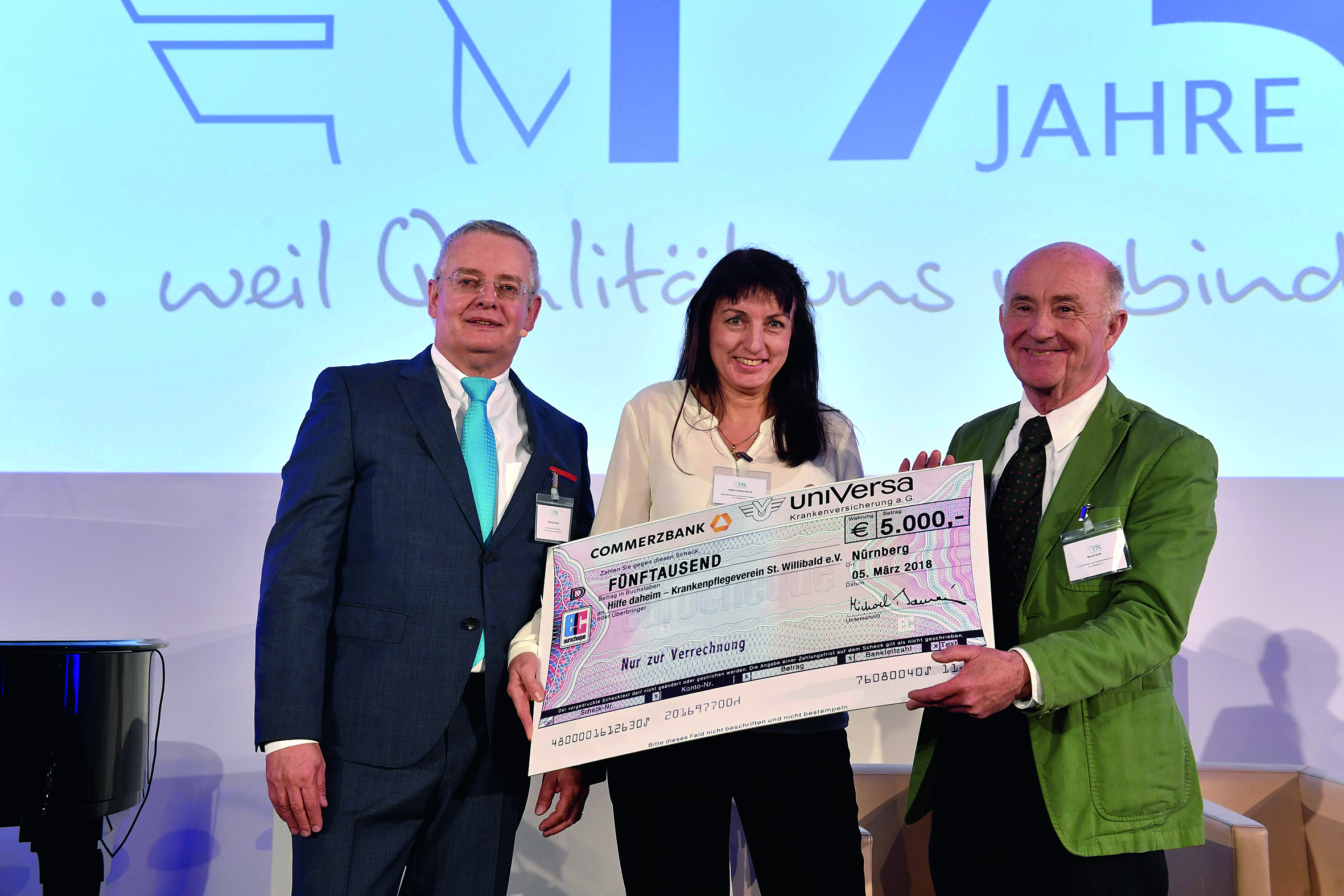 Spende für Krankenpflegeverein St. Willibald (v.l): Michael Baulig (Vorstandsvorsitzender uniVersa) sowie Geschäftsführerin Edith Fränkel-Mosch und 1. Vorstand Bernd Roth vom Krankenpflegeverein St. Willibald / Foto: uniVersa