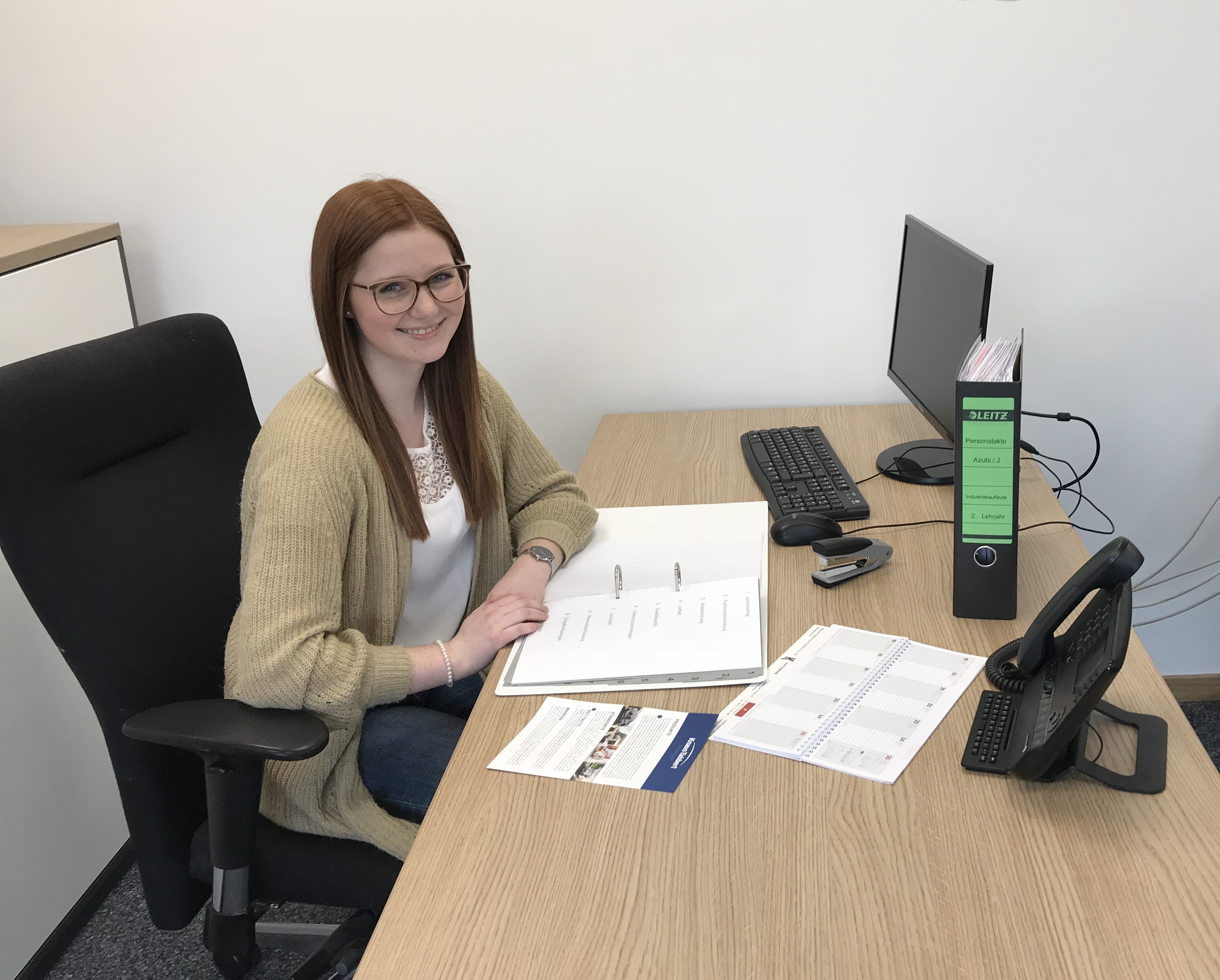 Christina Lindbüchl an ihrem derzeitigen Arbeitsplatz in der Personalabteilung. Während ihrer Ausbildung zur Fremdsprachen-Industriekauffrau lernt sie viele verschiedene Unternehmensbereiche kennen, Fotos: Knaus Tabbert GmbH