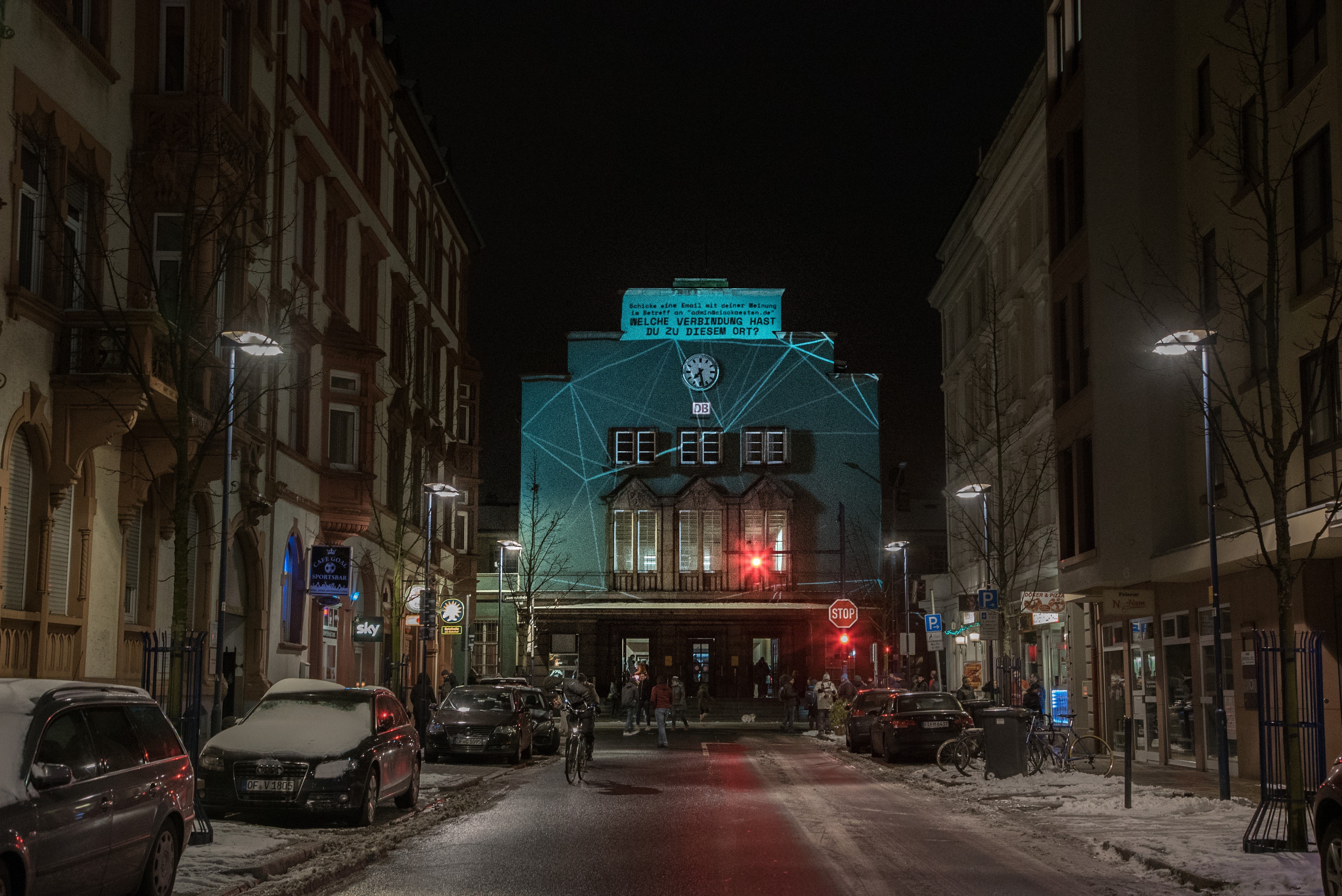 Partizipative Fassadenprojektion am Hauptbahnhof Offenbach, Foto von Lorenz Potthast