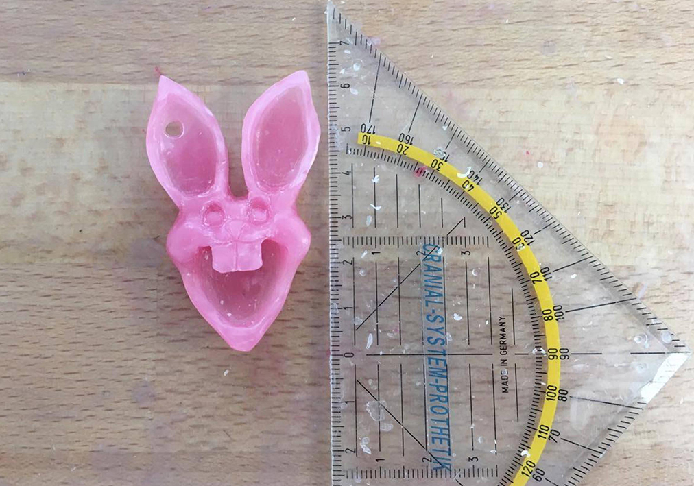 Schlüsselanhänger und Flaschenöffner zugleich ist dieser Osterhase aus recyceltem Metall, den Studierende der Hochschule Osnabrück entwickelt haben (rechts - der fertige Prototyp, links - Entwurf aus Wachs). (Foto: Hochschule Osnabrück)