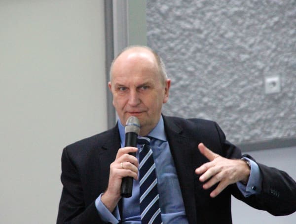 Ministerpräsident Woidke bei einem Podiumsgespräch an der TH Wildau