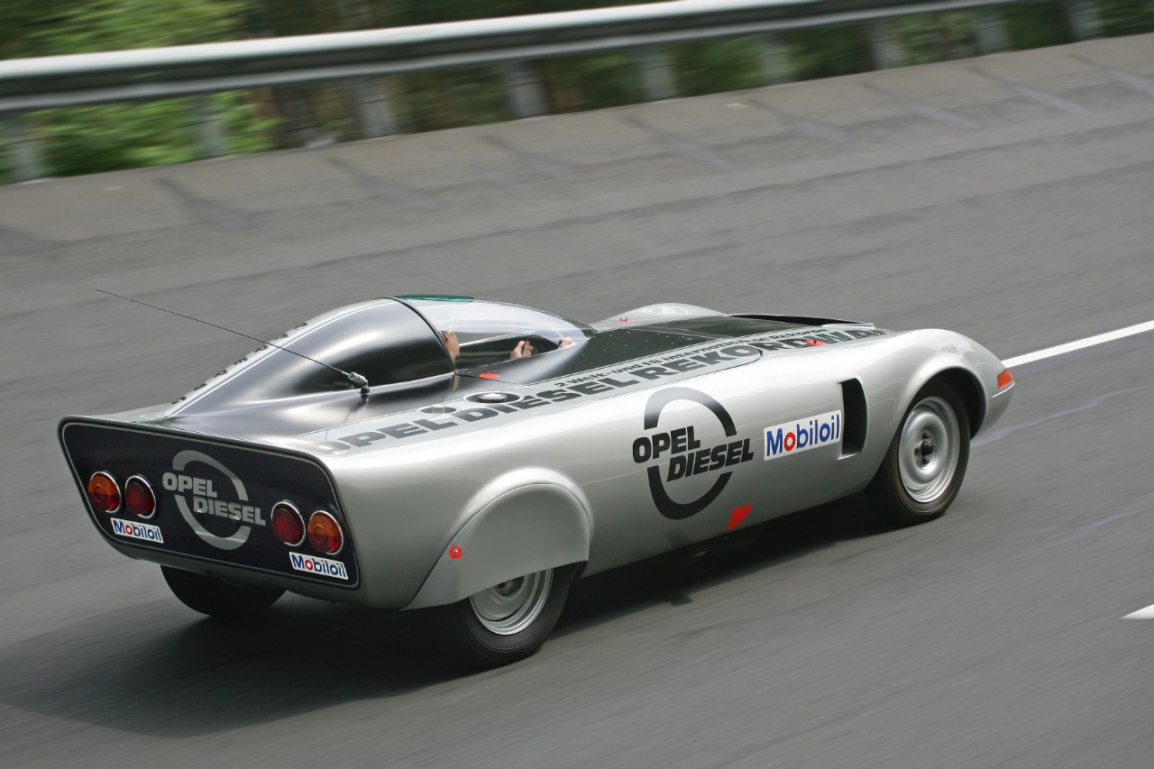 50 Jahre Opel GT: Scharfe "Nagelfeile": Ein modifizierter Opel GT mit Dieselmotor stellt 1972 bei Versuchsfahrten zwei Welt- und 18 internationale Rekorde auf