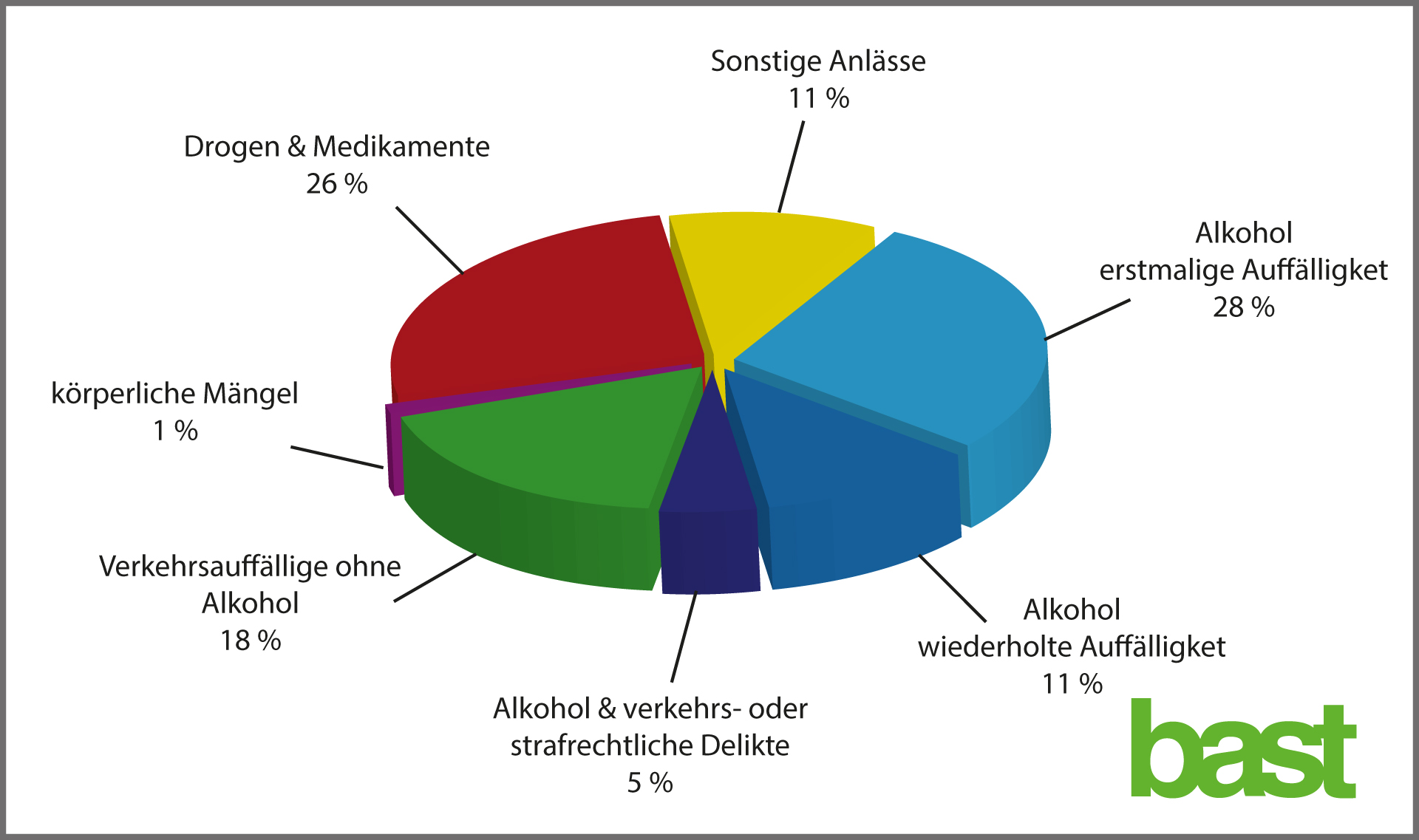 Aufschlüsselung der Anlässe für die Durchführung von MPU im Jahr 2017 (Quelle: BASt)