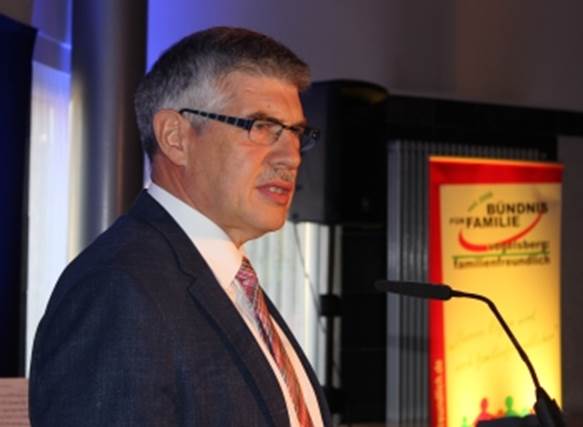 Landrat Manfred Görig stellte in der Festveranstaltung die stabile Kraft des Ehrenamts für unsere Demokratie heraus. Foto: Erich Ruhl-Bady