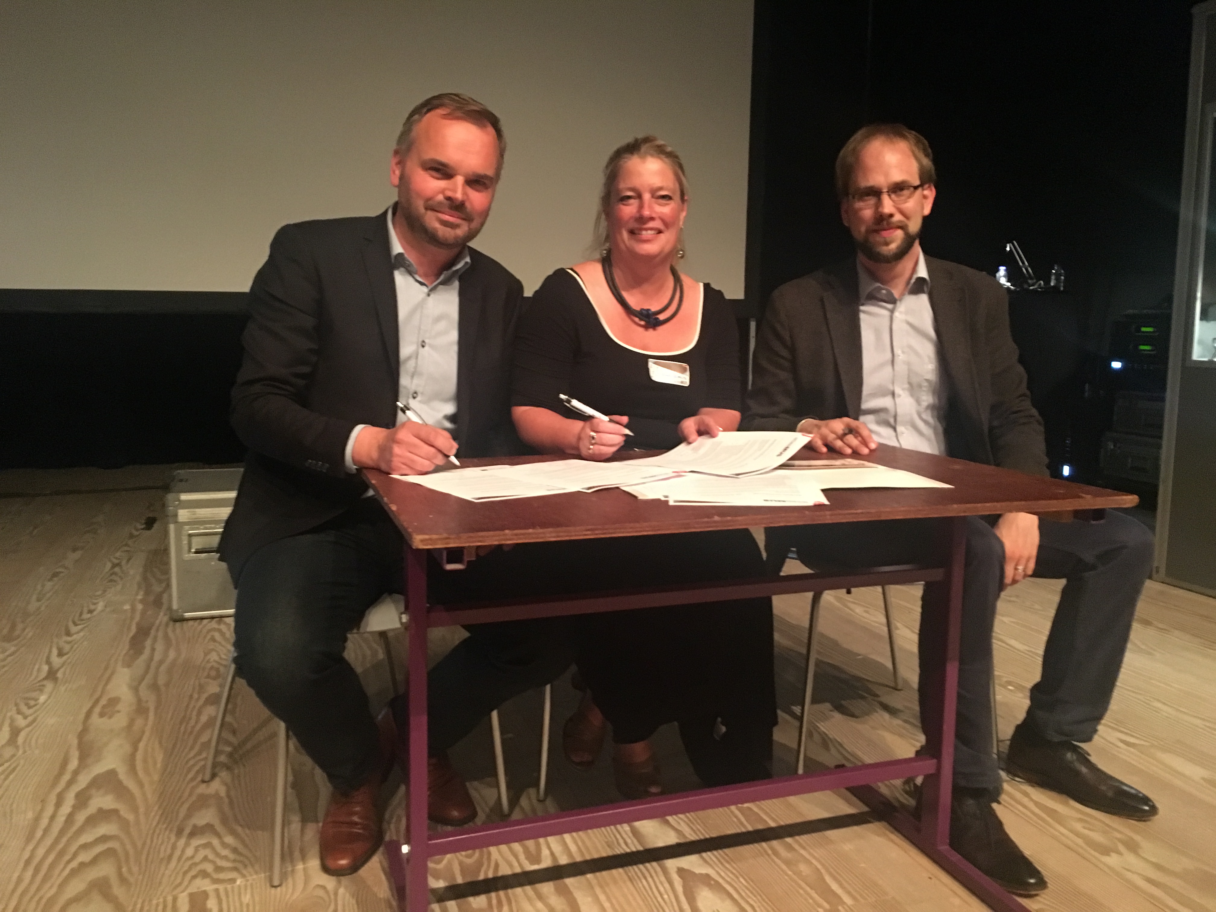 Die drei Museen unterschreiben das Gründungsdokument für den NORDMUS-Verbund / Foto: Museum Lolland-Falster: v.l.: Eskil Vagn Olsen, Ulla Schaltz und Stephan Meinhardt