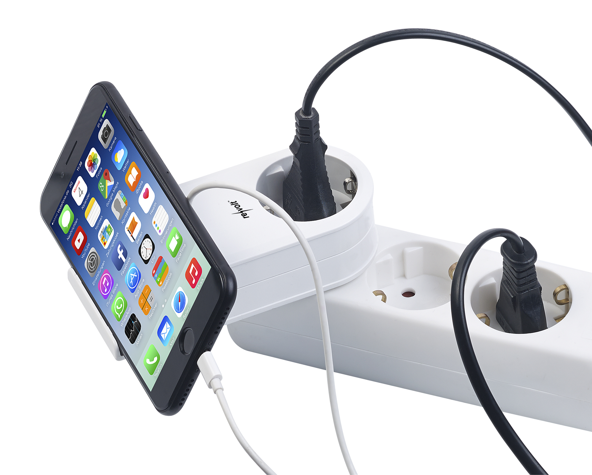 revolt Steckdose mit Doppel-USB-Netzteil & Smartphone-Ablage, 3,4 A/ 17 Watt