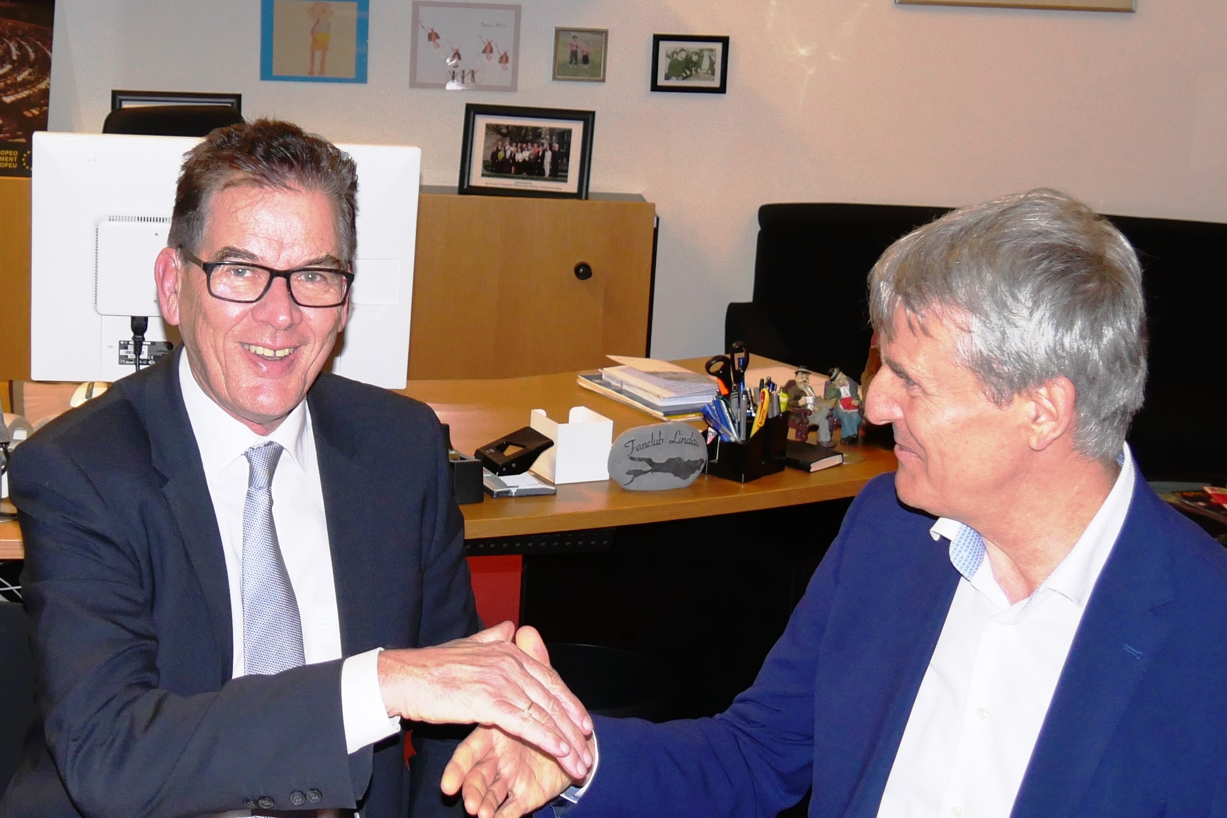 Bundesentwicklungsminister Dr. Gerd Müller (links) und Andreas Schöfbeck, Vorstand der BKK ProVita (rechts)