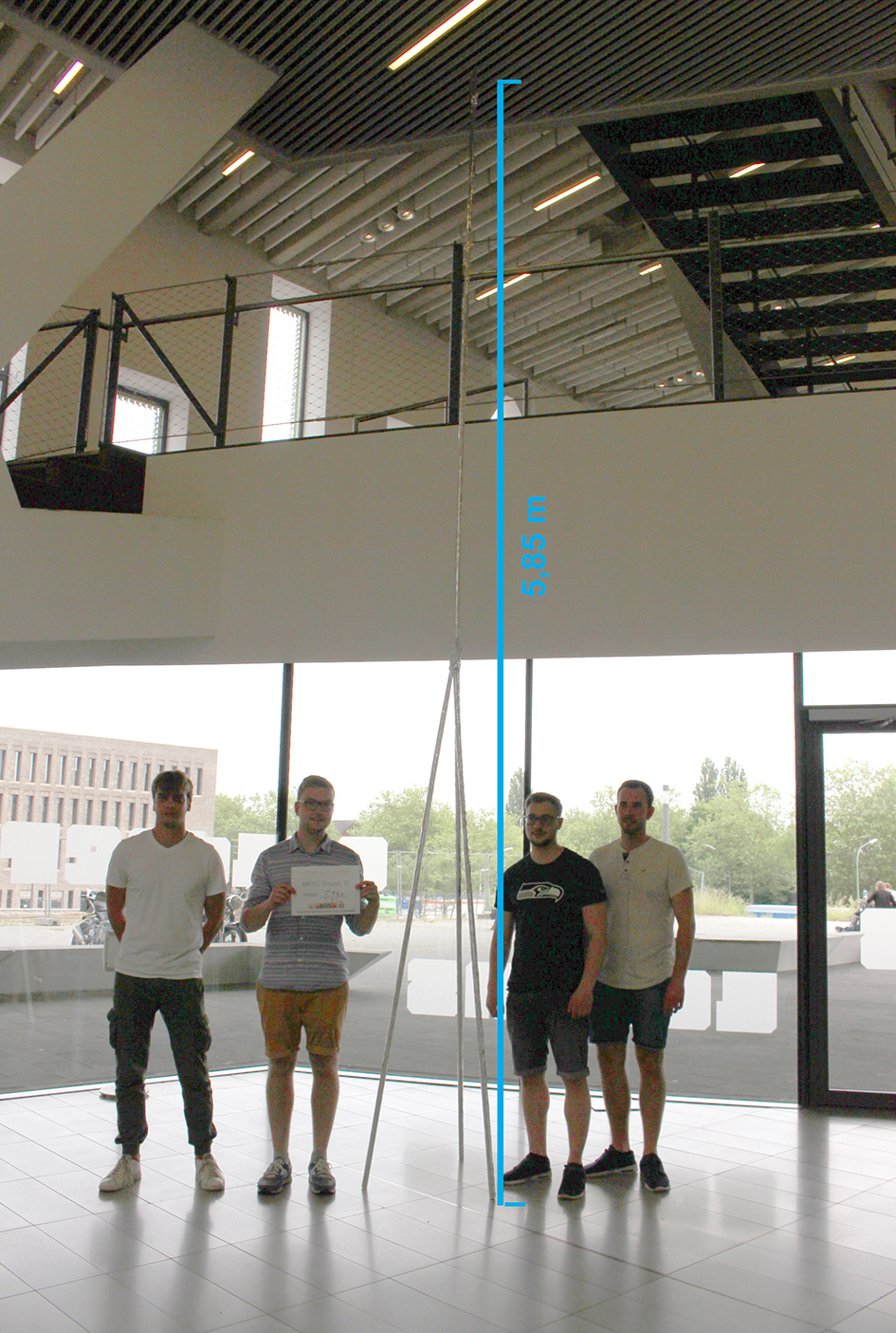 Der Siegerturm ist ganze 5,85 m hoch: Stolze Gewinner sind (von links): Alwin Keibel, Jan Niklas Kaufmann, René Nauber und Thomas Meyer / Foto: Lidia Wübbelmann / Hochschule Osnabrück