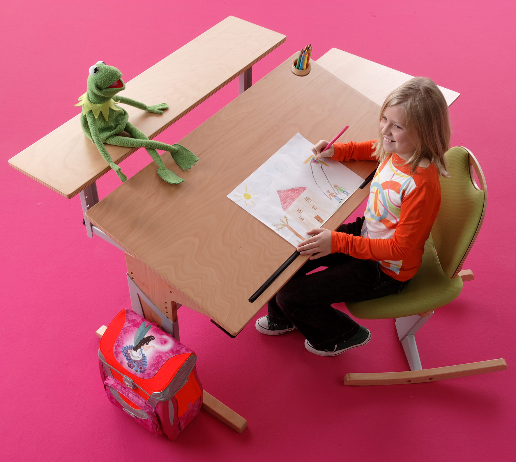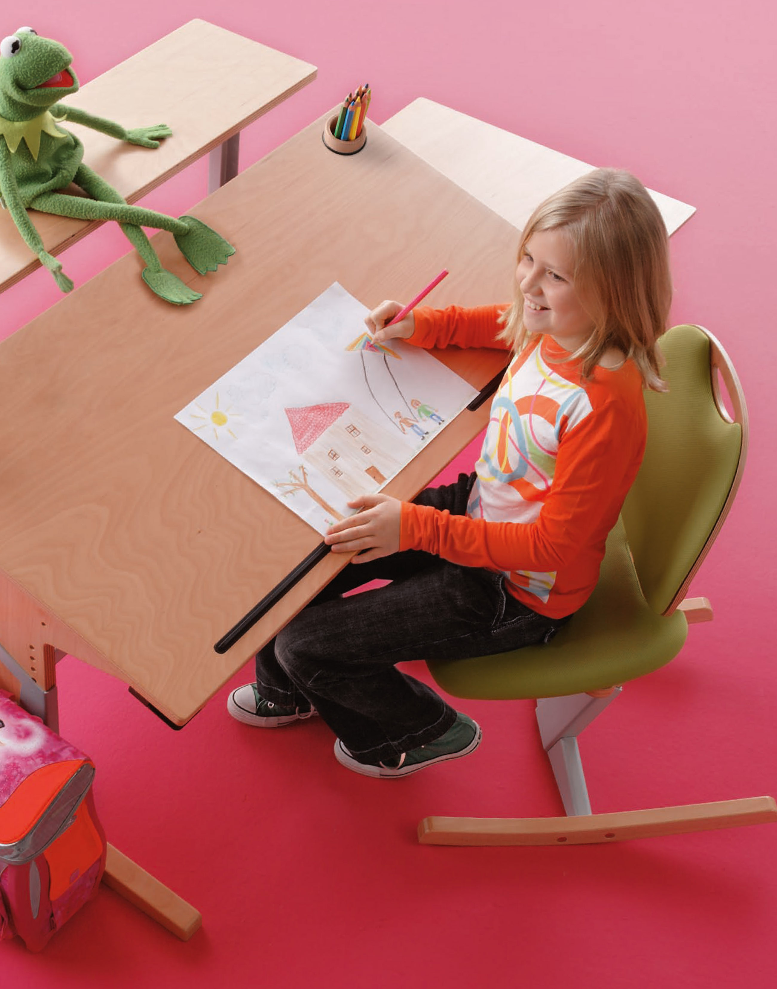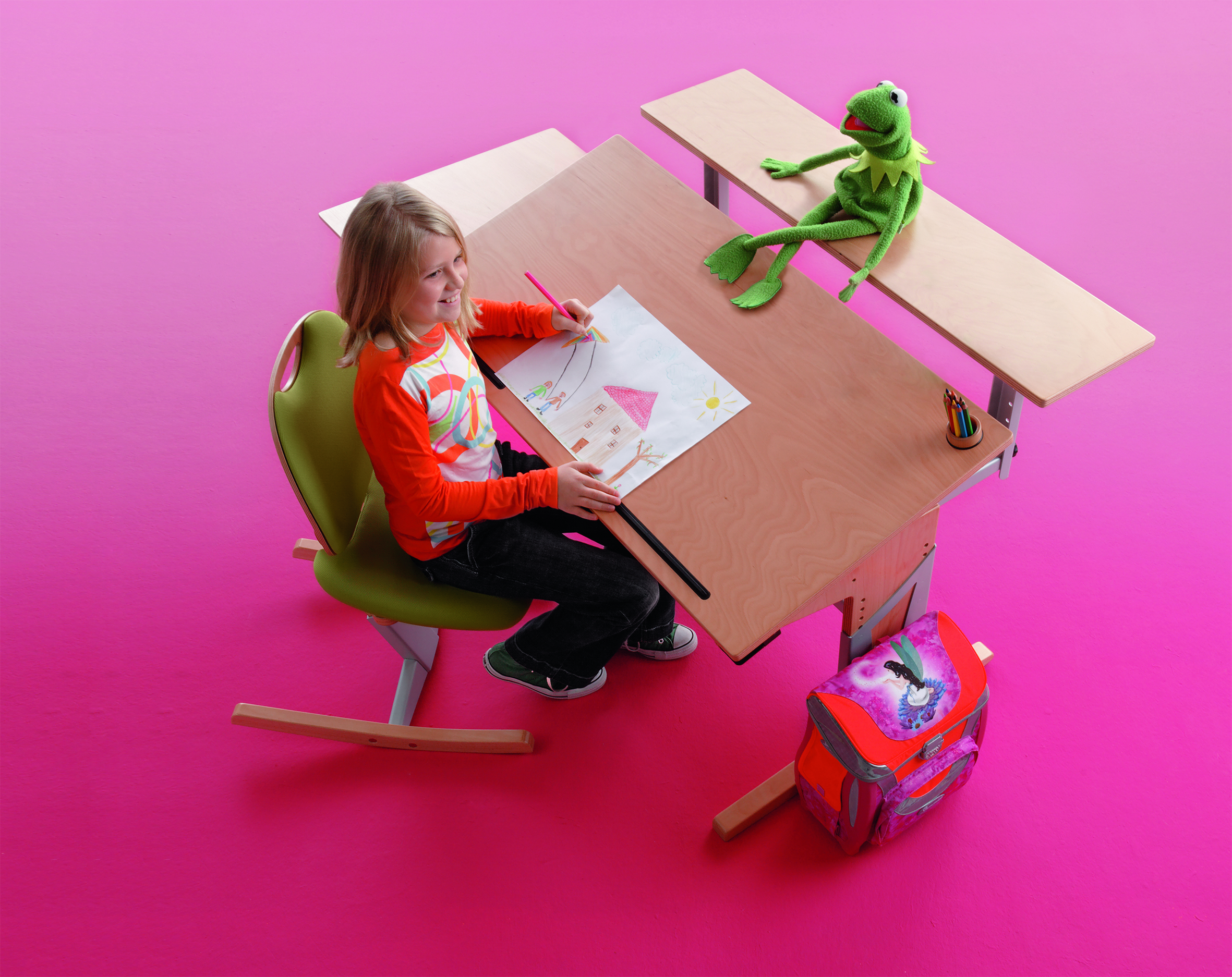 The ergonomic children’s work environment provided by Company Moll forms a unit and its components can be adjusted to each other as well as to the child’s personal needs. Photo: AGR/Moll