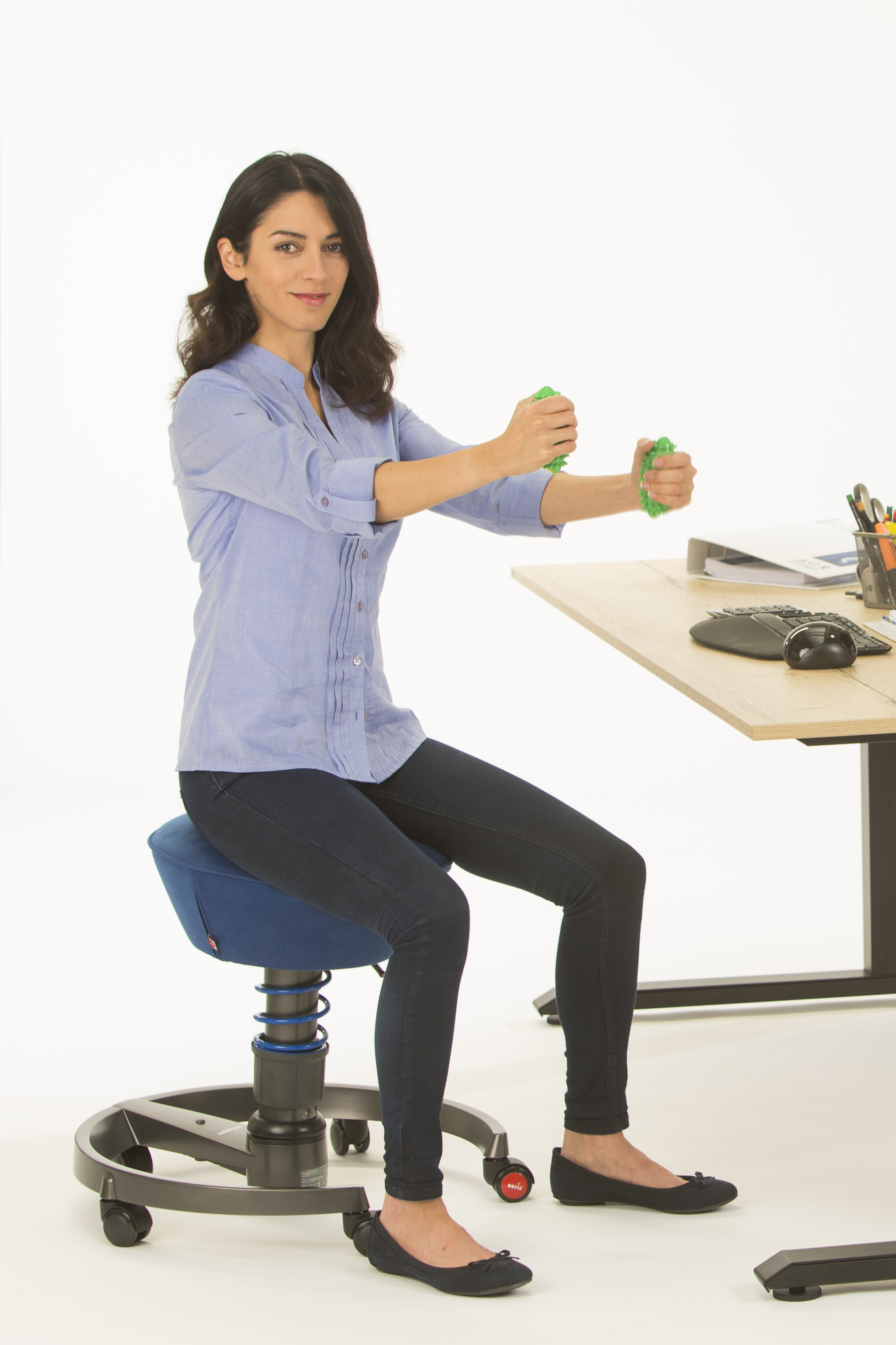 The number of office workplaces is growing constantly, together with a comparable increase in the number of backache patients. This is not just a coincidence, because sitting for hours at the computer puts a considerable strain on our spinal column. Preventing this demands a change of attitude: active sitting on dynamic office chairs is better than static sitting; furthermore, office workers should use every opportunity to stand up and move around now and then. Also advisable: office gymnastics in the workplace. Your back can benefit from just a few small exercises each day lasting no more than a few minutes. Tip: small sport devices for the desk drawer make it more fun to train your back in the office. Just give it a try!